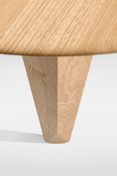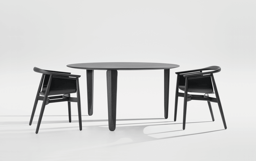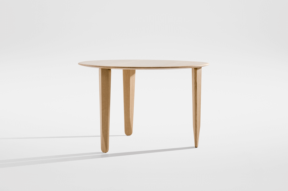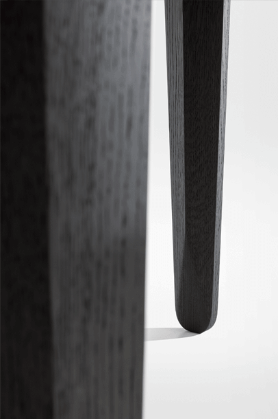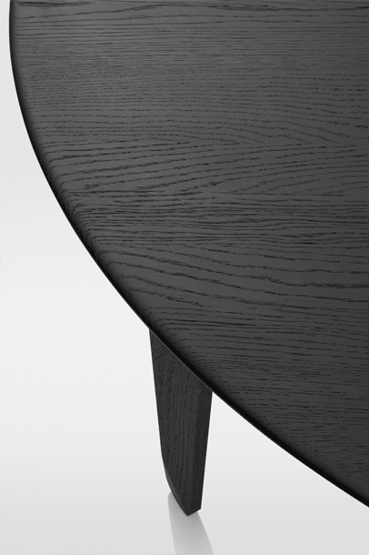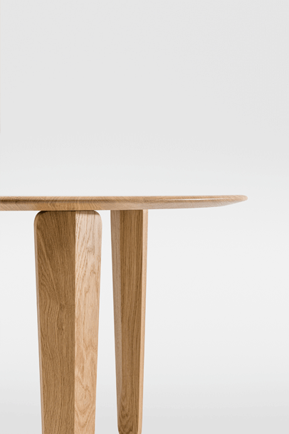 KUYU DINE – cut diamonds from solid wood. Inspired by and abstracted from African masks, precision cut table legs have been created to carry the table top. The cut diamonds of solid wood appear sculpturally powerful and at the same time seem to float. You can choose from three tabletop shapes: Circle, rectangle and convex rectangle.