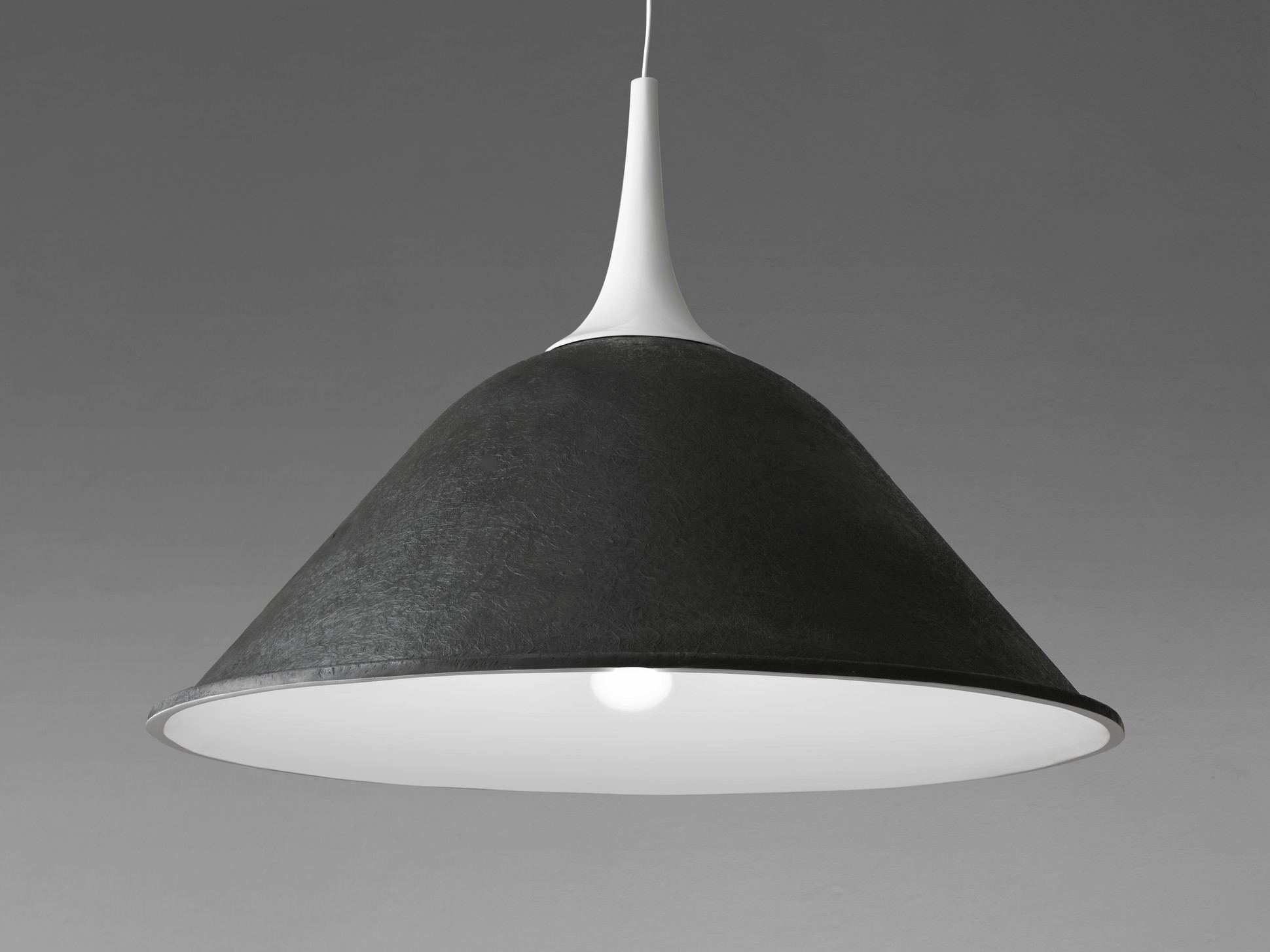 Una lampada a sospensione, dal profilo essenziale e dalle linee pure che perfettamente si adattano ad una sala da pranzo, un angolo lettura, uno spazio di relax e condivisione. Il suo profilo ricorda una campana, che non diffonde rintocchi ma luce calda e avvolgente.