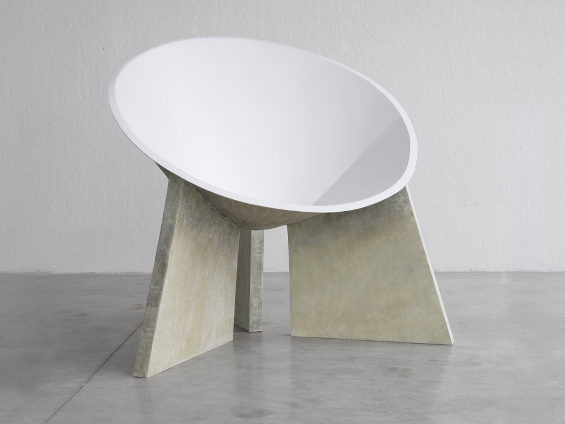 Le gambe robuste e solide, dalle geometrie nette, sostengono l’armonia circolare della profonda seduta. Il risultato è una poltrona dal disegno futuristico e al contempo primitivo. Una forma suggestiva come una metafora, che arricchisce interni ed esterni della sua bellezza simbolica.