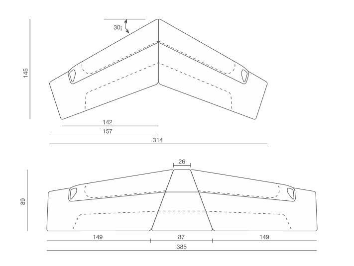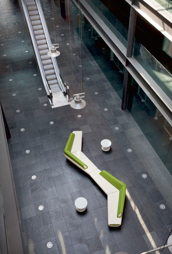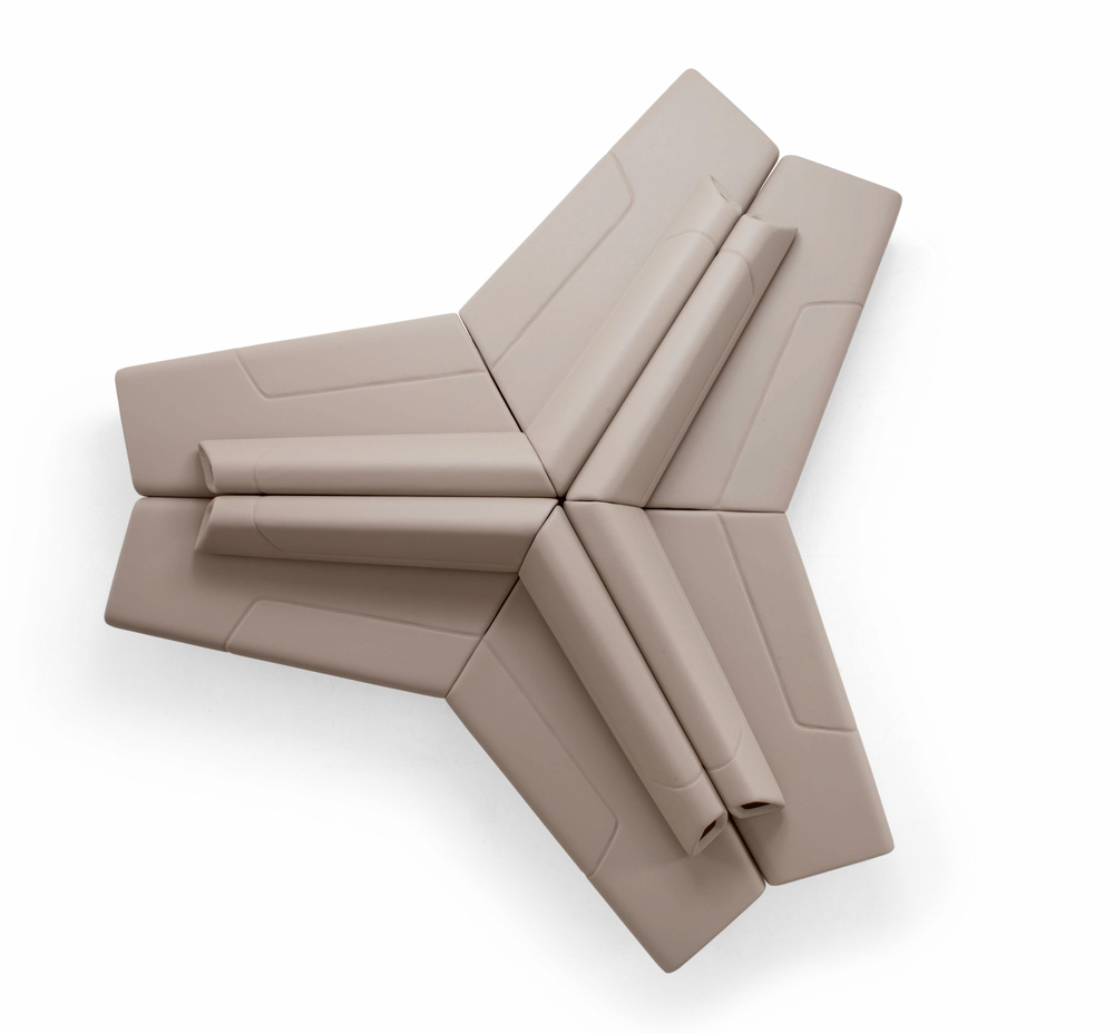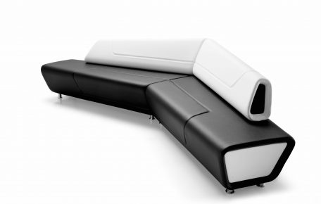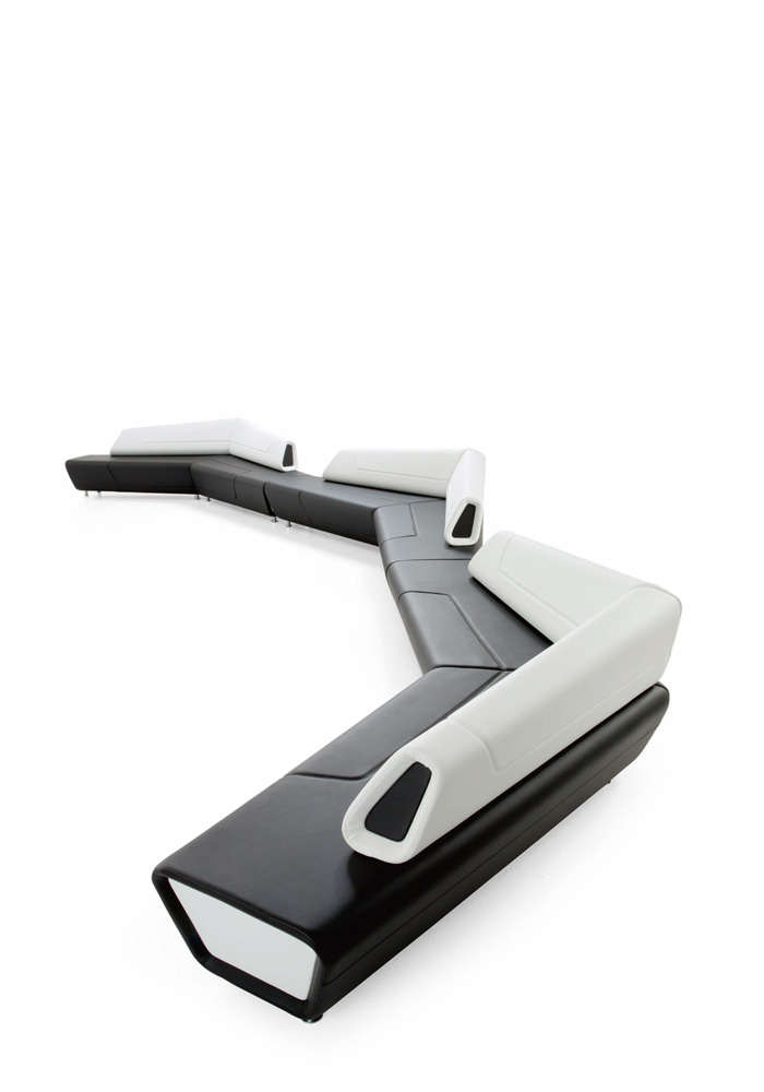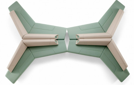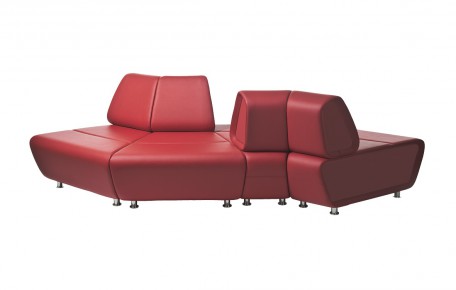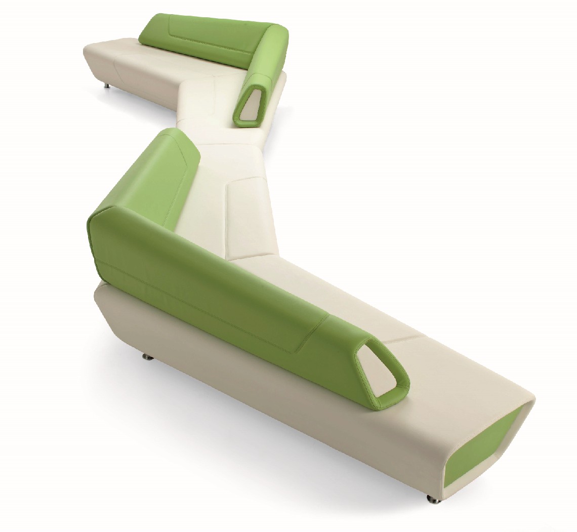 Modular range for waiting, conversation and meeting areas made of various interchangeable units for corner or linear solutions in one-color or bi-color upholstery