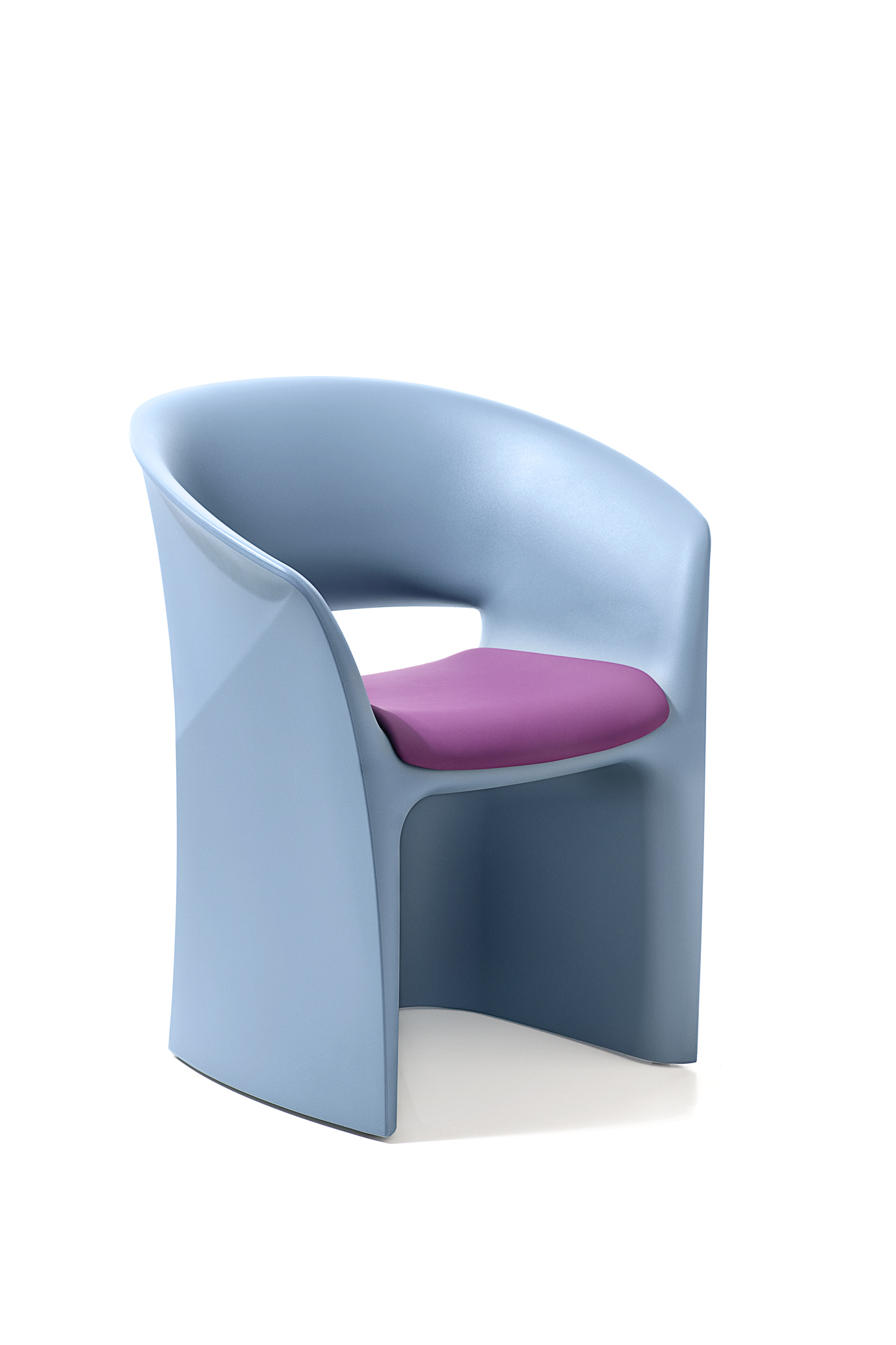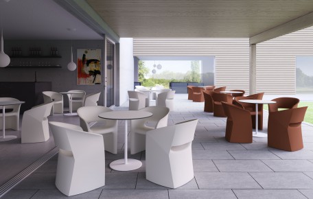 Tub chair in non-porous polyethylene, both for indoor and outdoor use, obtained by rotational molding process, in the colors white-light blue-terracotta-mustard-burgundy- lava.