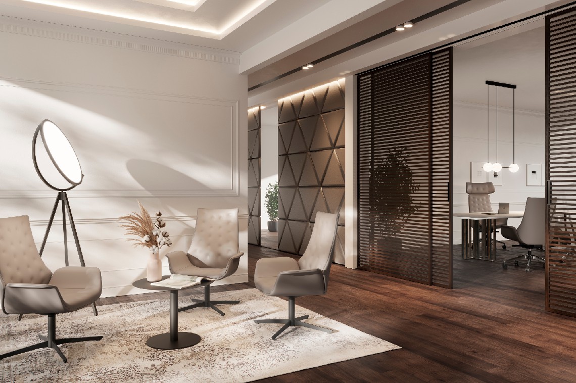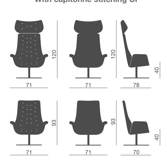 Armchair for relaxing, waiting and reception areas, with different options of either fixed or swivel bases.