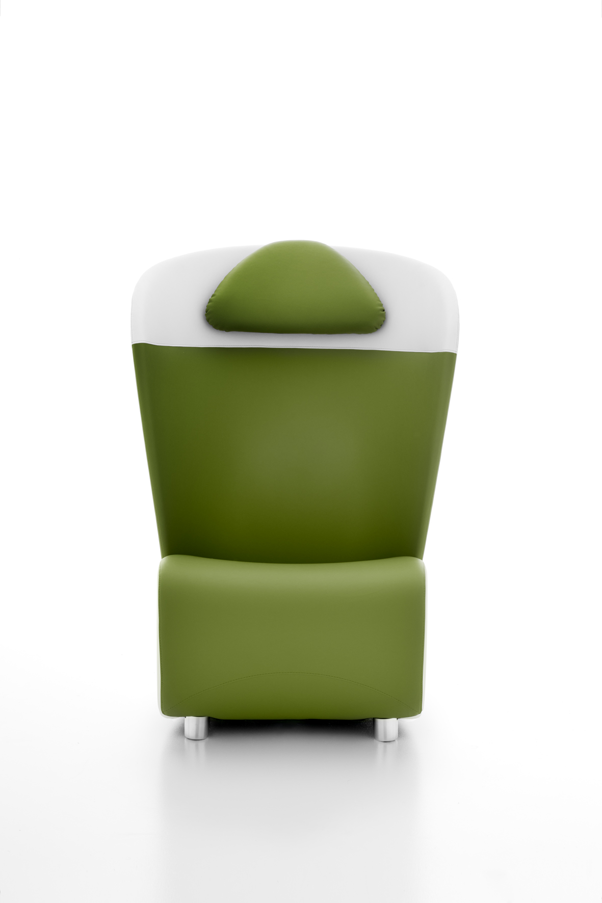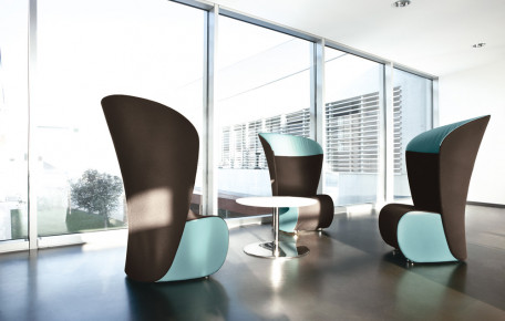 Armchair with high back for waiting, relaxing and conversation areas, available in one-colour or two-colours versions, with feet.