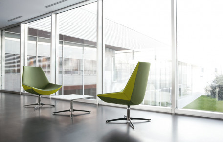 Armchair for relaxing, waiting and reception areas, with different options of either fixed or swivel bases.