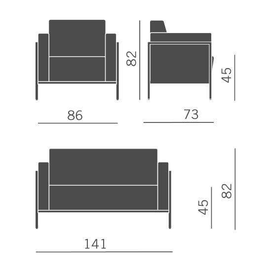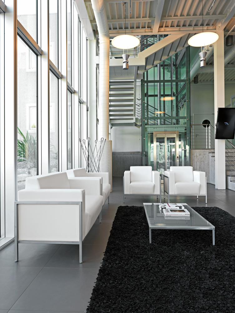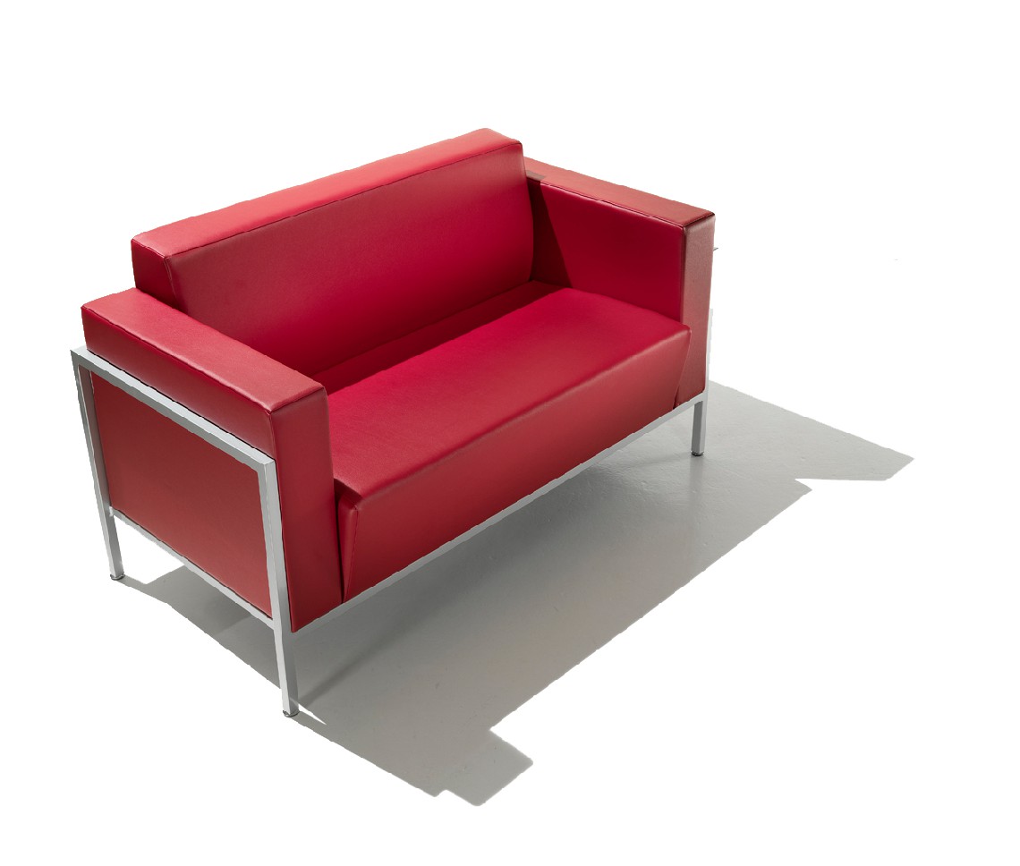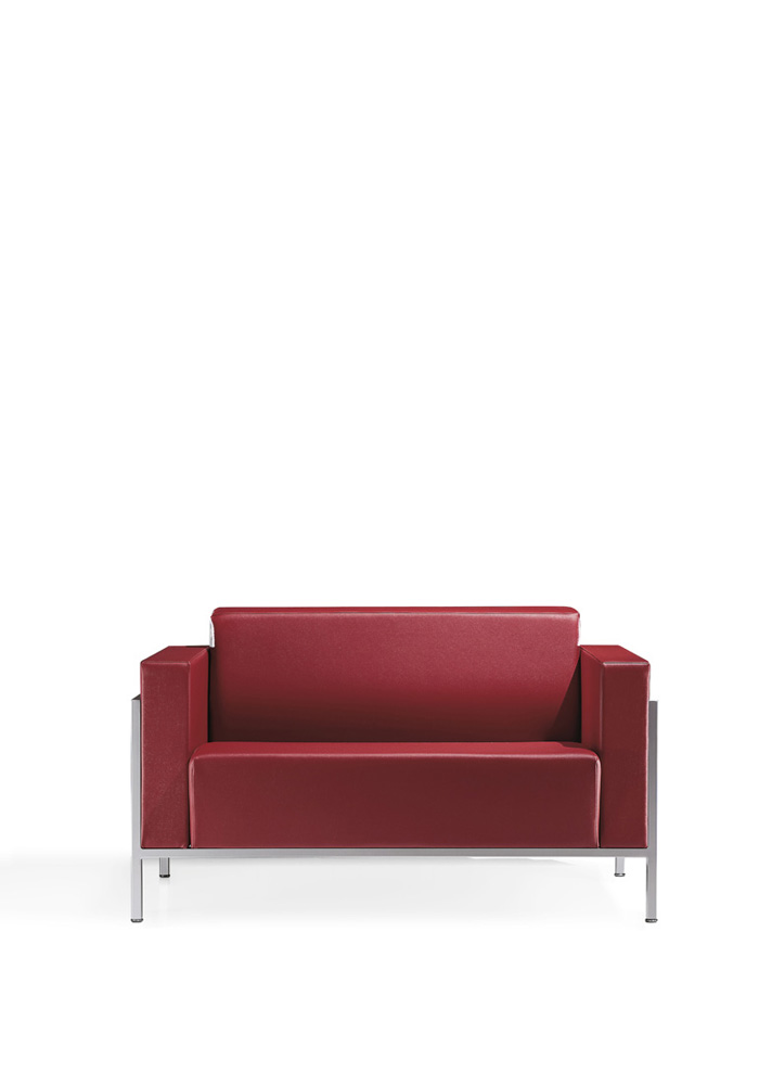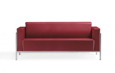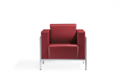 Armchair and 2-3-seater sofa for waiting and conversation areas with external steel structure, epoxy finish in satinized aluminium colour.