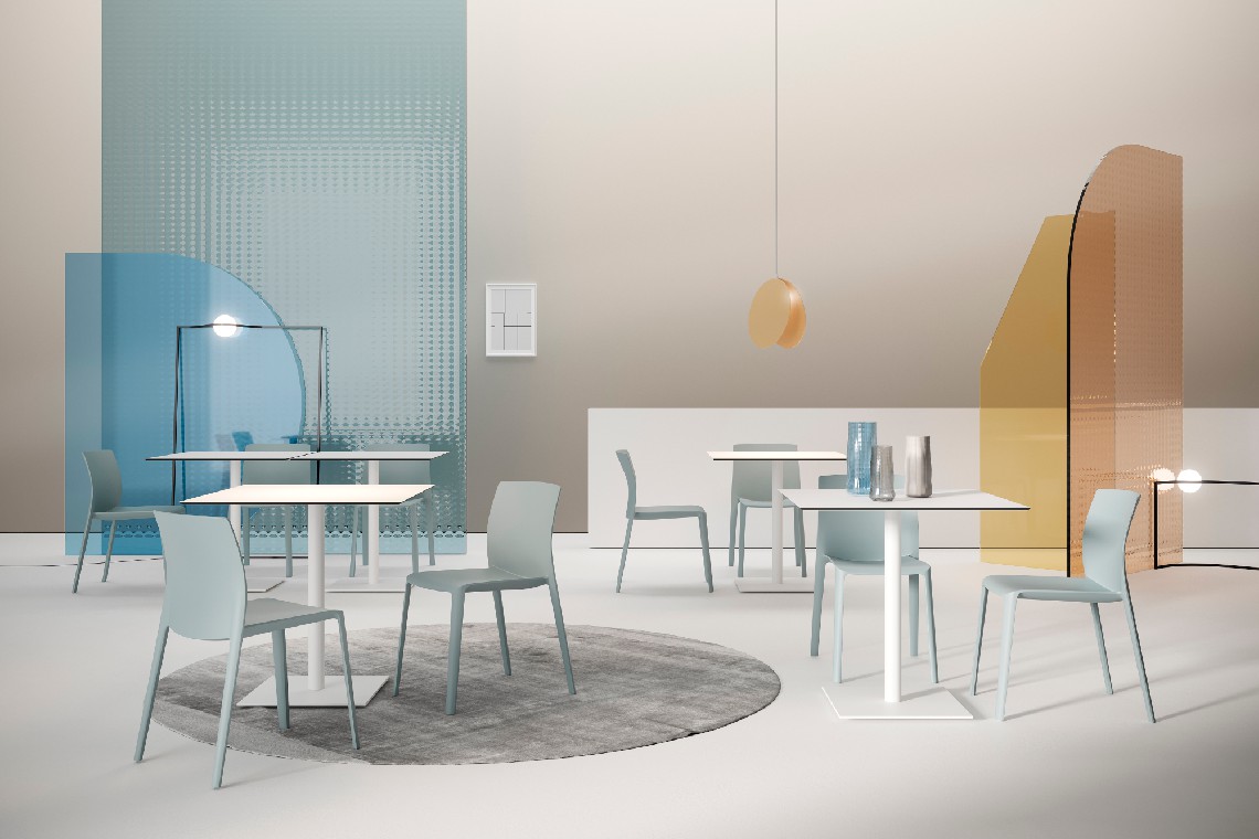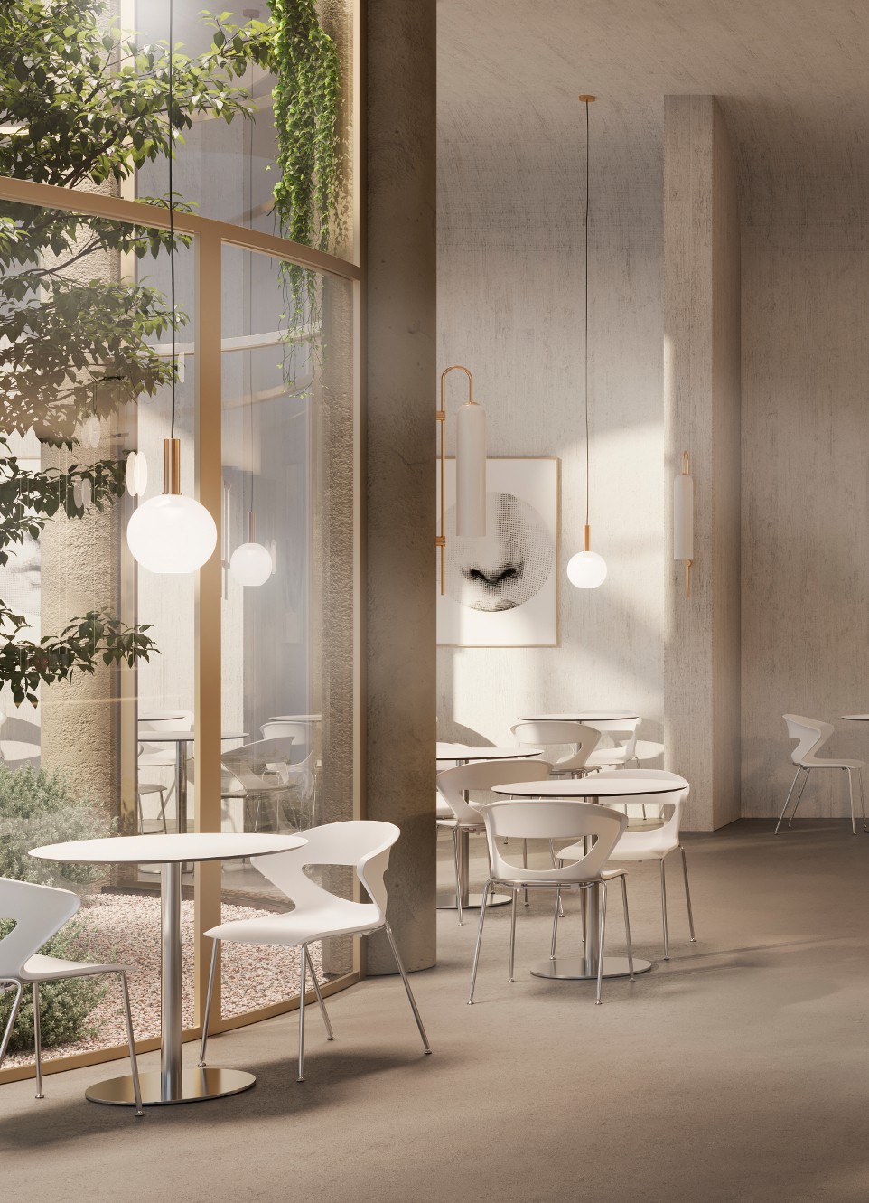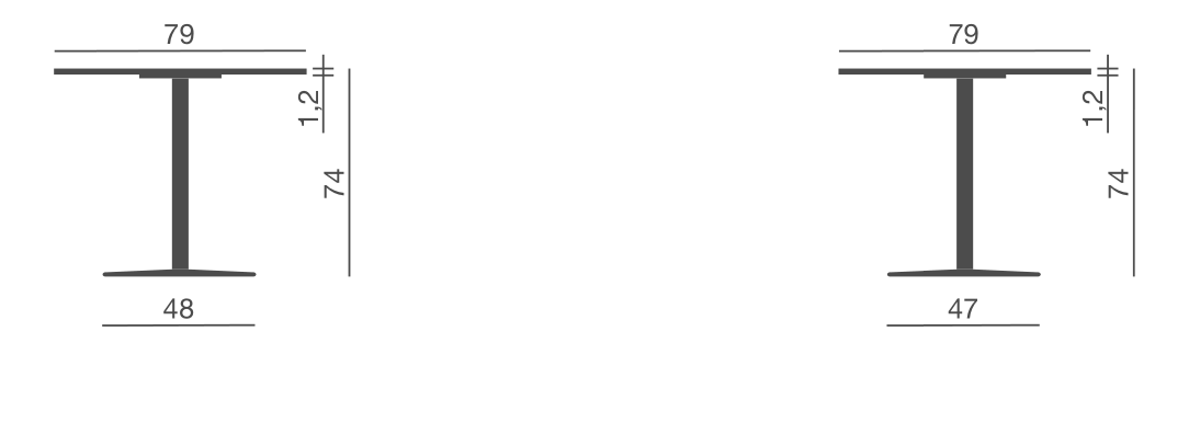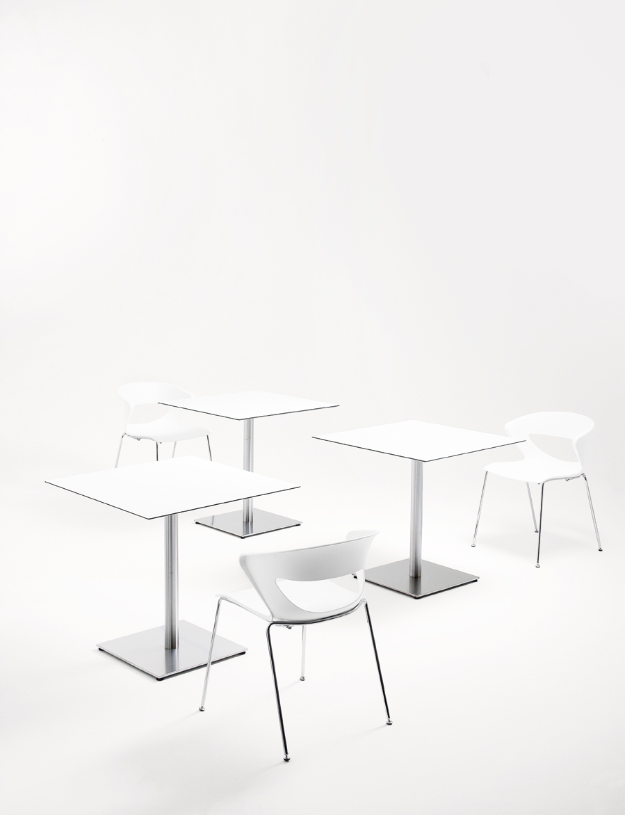 - HPL (High Pressure Laminate) round or square tops with thickness 12 mm in white or