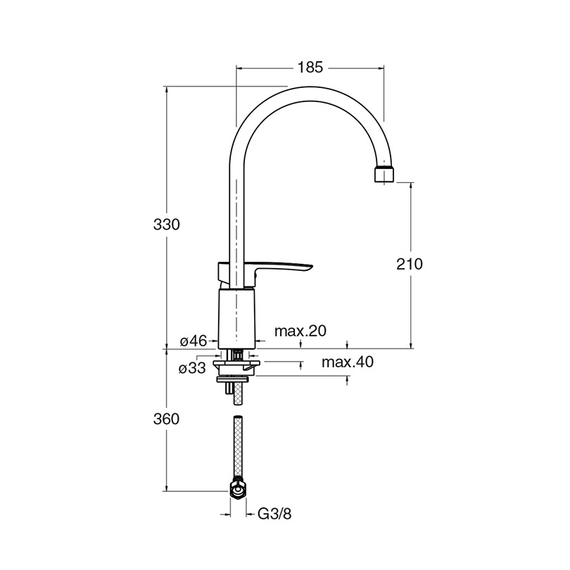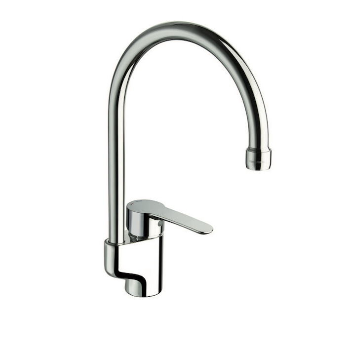 Miscelatore monocomando cucina, bocca orientabile, monoforo da piano, con miscelazione meccanica laterale destra. Corpo dritto, H. 330 mm