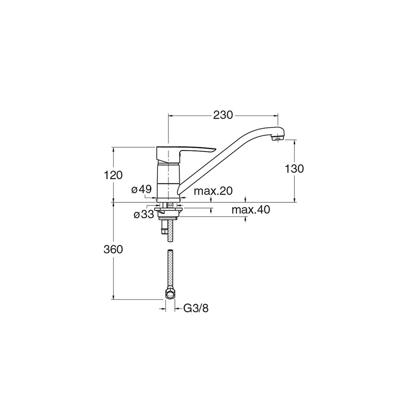 Miscelatore monocomando cucina, bocca orientabile, monoforo da piano, con miscelazione meccanica frontale, H. 120 mm