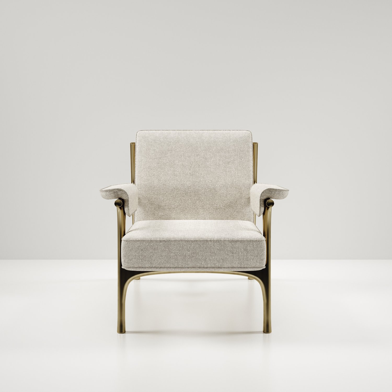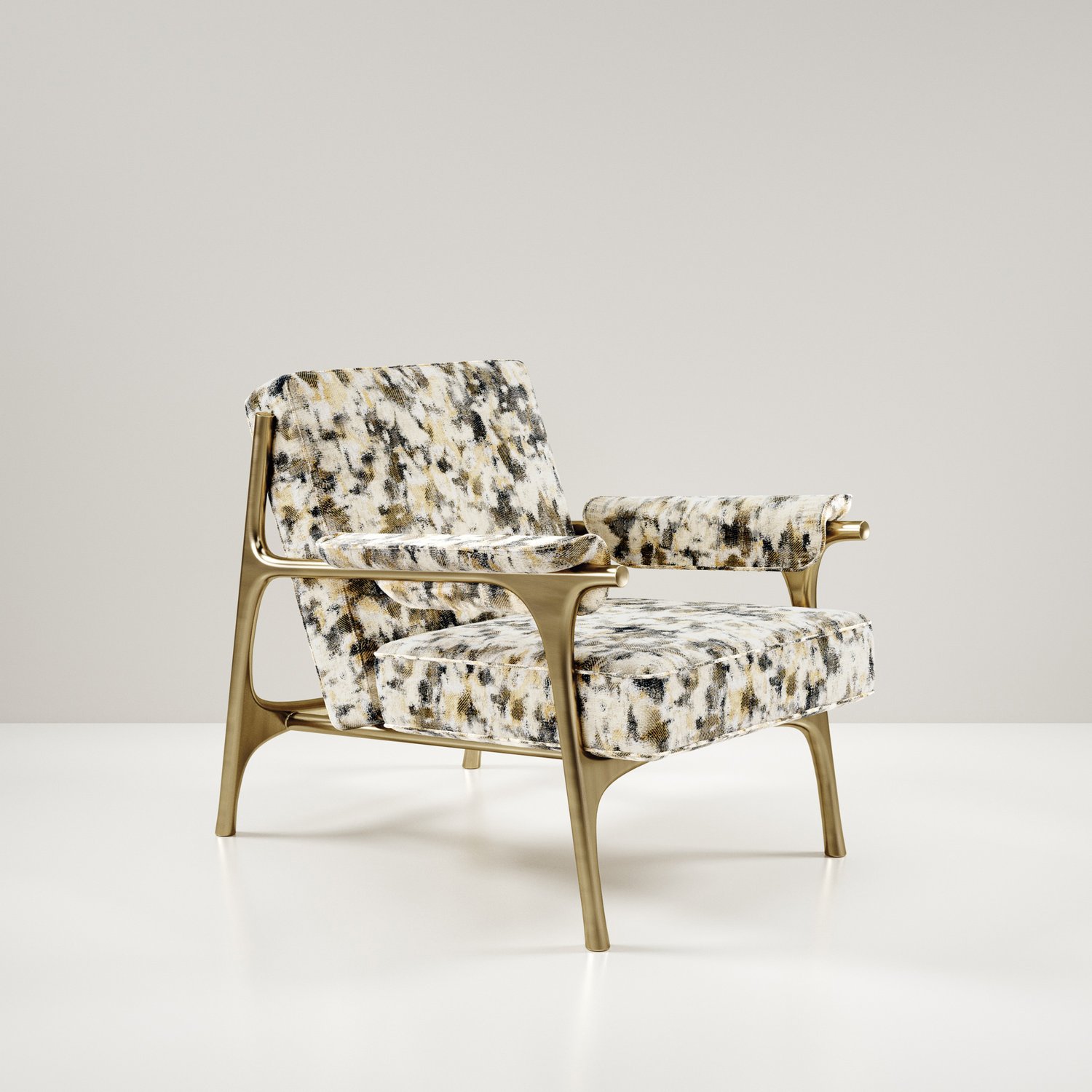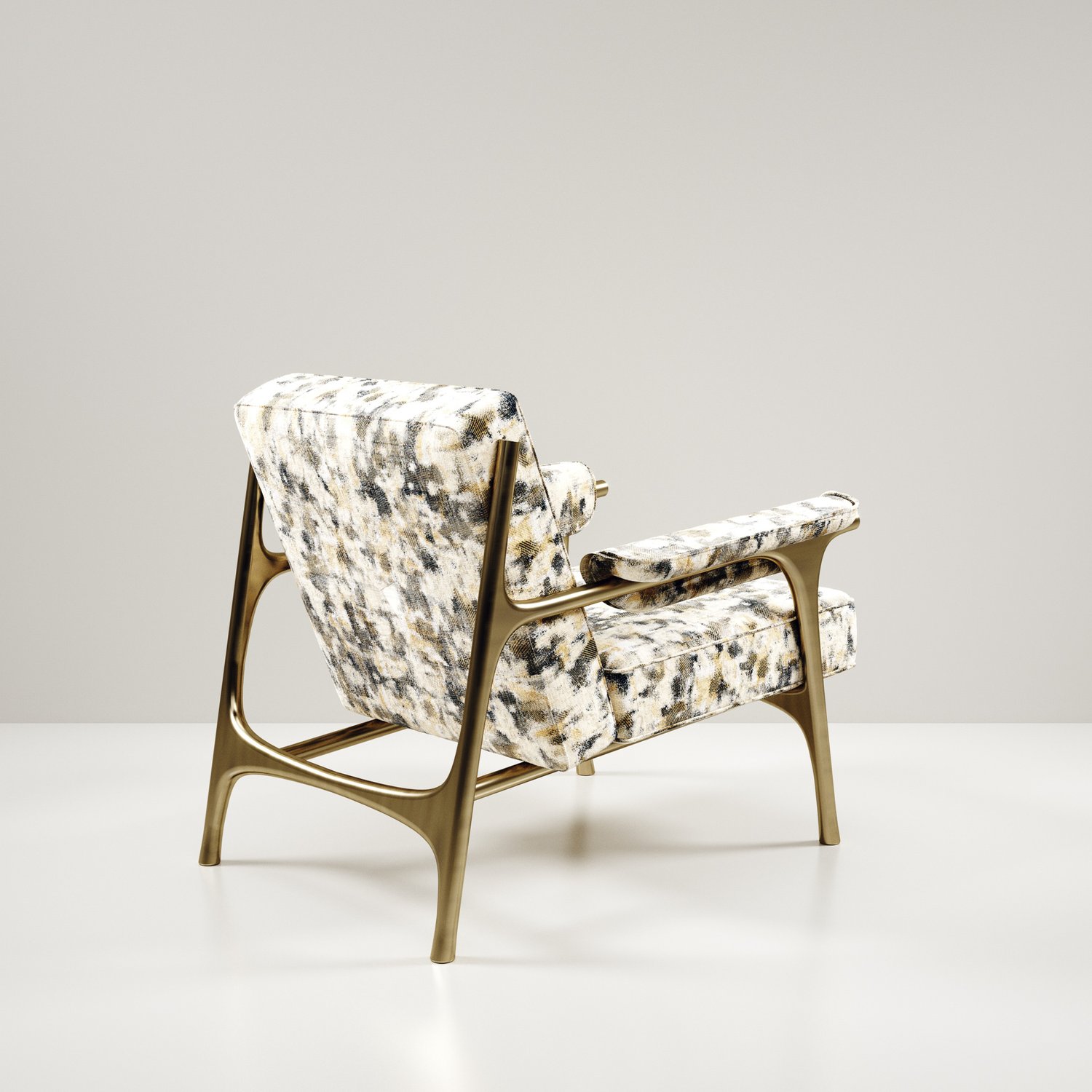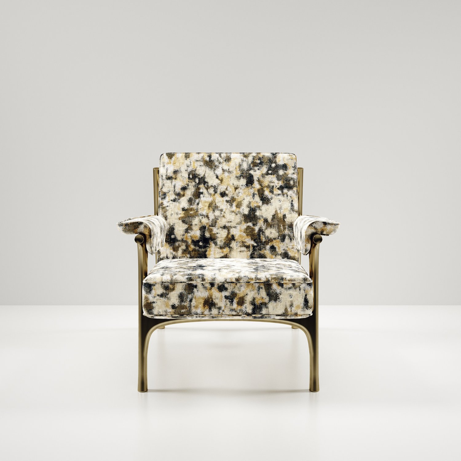 The Ramo armchair by R & Y Augousti is an elegant and versatile piece. The upholstered piece in Pierre Frey fabrics provide comfort while retaining a unique aesthetic with the bronze-patina brass frame and details. Part of the Ramo Seating Series.