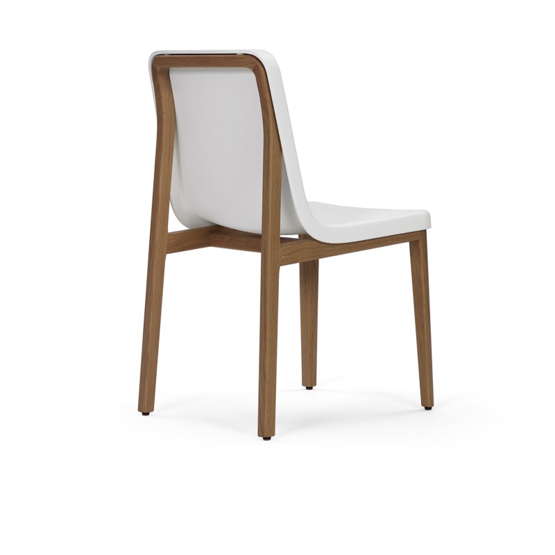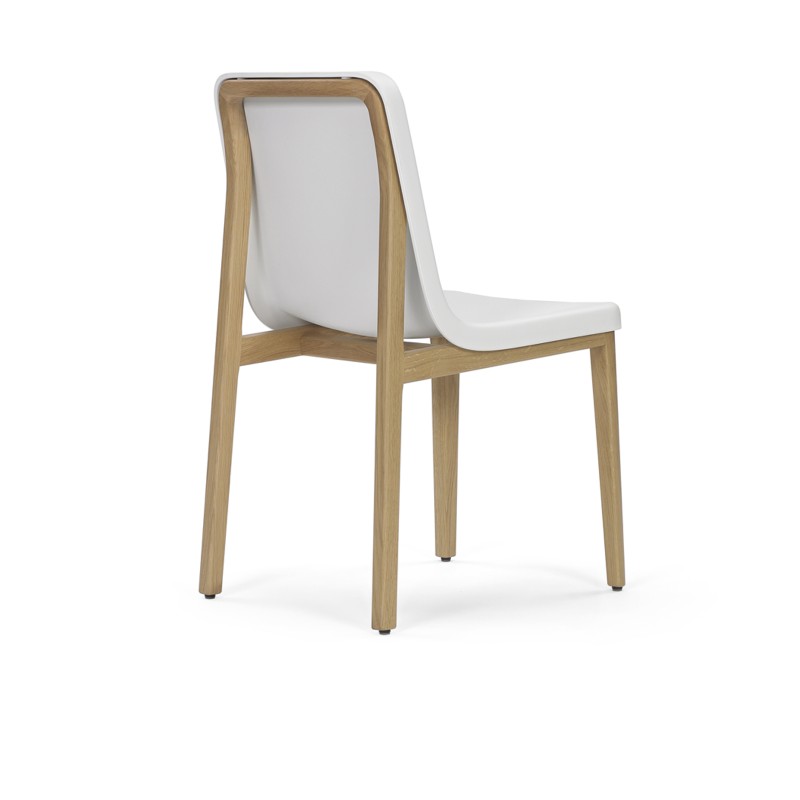 With their Sedan Chair, Lyndon Neri and Rossana Hu complete their product family with a lightweight, elegant and comfortable chair which can be used both at dining tables and as a visitor’s chair. As is the case with the Sedan Lounge Chair, the special attraction of the design is the contrast between the seat shell and frame: the seat shell visually wraps over the frame like a cover, creating two functional areas that complement each other and generate suspenseful contrasts with different materials. The plastic seat shell is available in monochrome versions, with or without fl at upholstery. A variety of colour and material versions results in combinations with frames made of different woods which can be selected to fi t in with any interior, either harmoniously or intentionally as contrasting accents. With the Sedan series, neri&hu designed the perfect furniture for the contract segment which they had long searched for to furnish their hotel projects – seating furniture with a strong character, comfortable and yet lightweight and elegant.