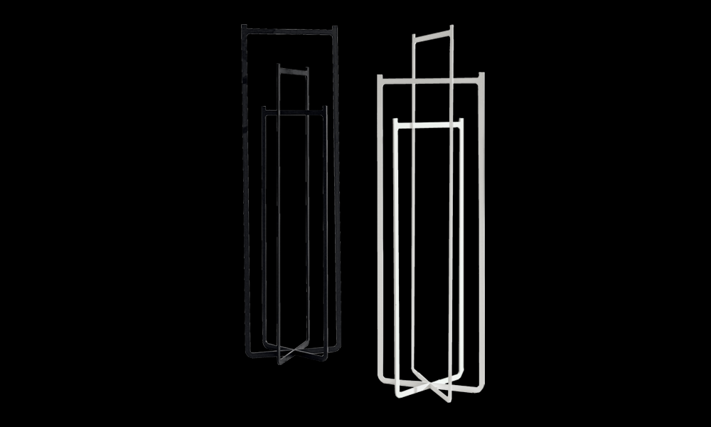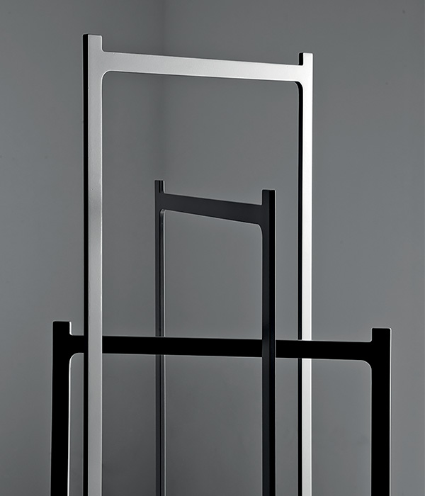 di varie altezze saldati fra loro per moltiplicare la sua capienza. Appendiabiti in lamiera di metallo tagliata a laser, saldata e verniciata, varie finiture.