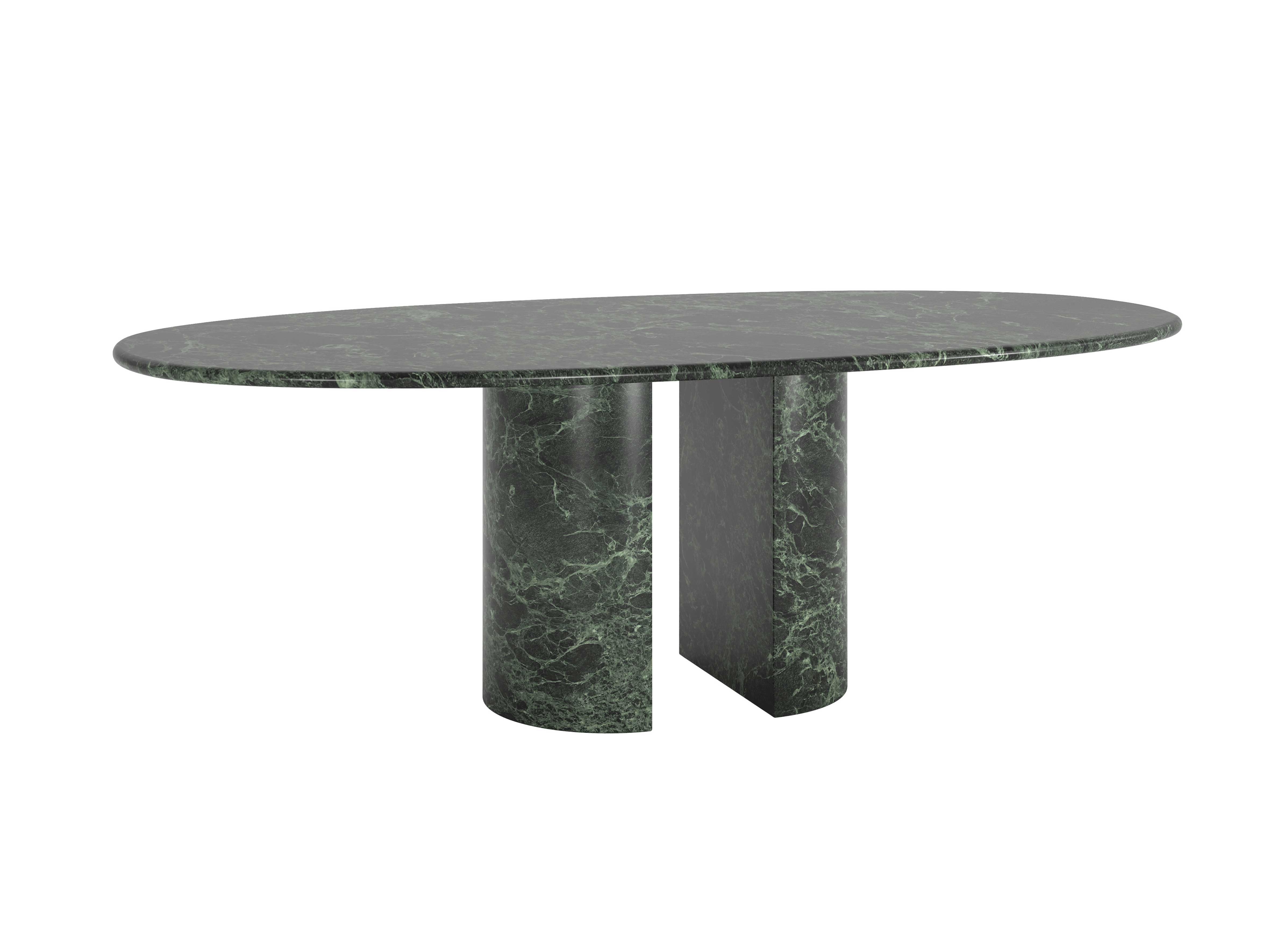 The Dolmen has a majestic marble top, 3 cm thick, which rests atop two semi-circular bases made of the same material, further enhancing the support surface and ensuring a remarkably tactile experience.