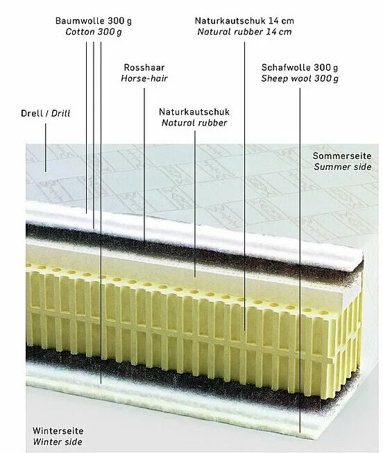 H?chst anpassungsf?hig. Latexmatratzen haben au?ergew?hnliche biomechanische und mikroklimatologische Eigenschaften. Wittmann verwendet reinen Naturkautschuk, der sich durch eine weiche, anschmiegsame Elastizit?t auszeichnet und die Matratze durchgehend anpassungsf?hig macht. Das extrem gute Federungs- und Rückstellverhalten der Matratze sorgt für perfekten Liegekomfort. Wittmann Naturkautschukmatratzen sind ausschlie?lich mit dem Einreihen-Lattenrost kompatibel.