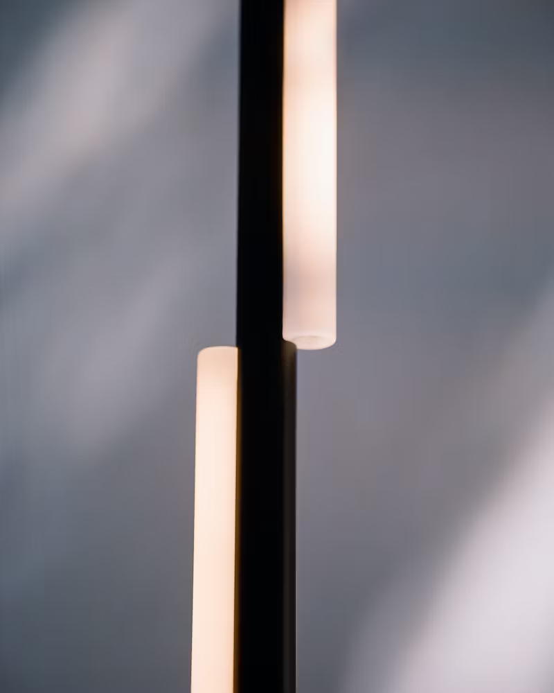 This collection of fixtures uses the standard unit of the light tube as a measure. Through the alternation of 1m and 0.5m modules, it creates a rhythmic language of recording space. The designs evolve as a parallel progression of rods, combining five variations of standard linear LED bulbs and metal tubes of the same diameter. With this series, Michael Anastassiades expands the compositional possibilities of some of the most structural elements of lighting, engaging the viewer in a rigorous yet playful exercise in measuring.