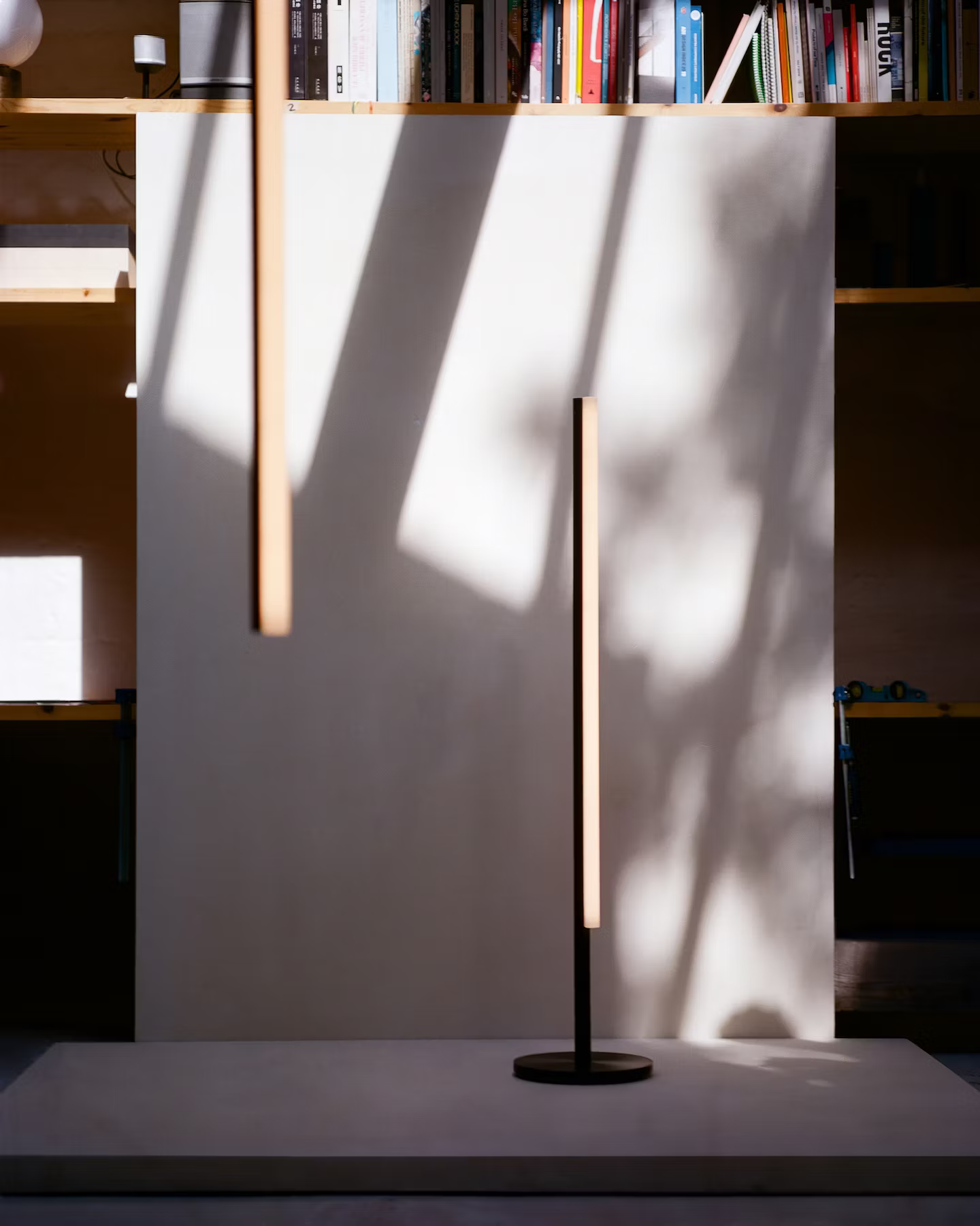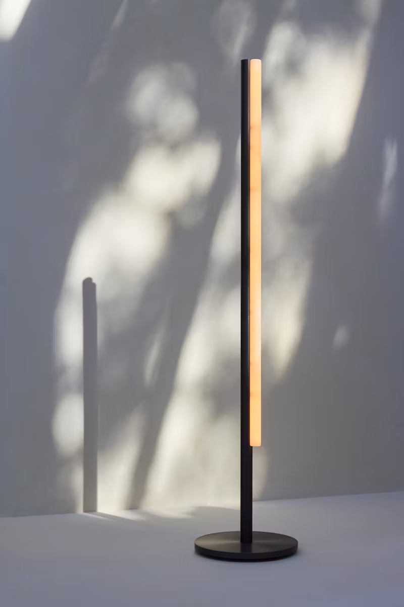 This family of floor lamps proposes an interchangeable lighting solution attached to a marble block. The exercise is an attempt to provide minimal support for the linear lighting elements through the simple gesture of touching the marble base with an invisible magnetic connection. The result is a distilled composition of basic elements.