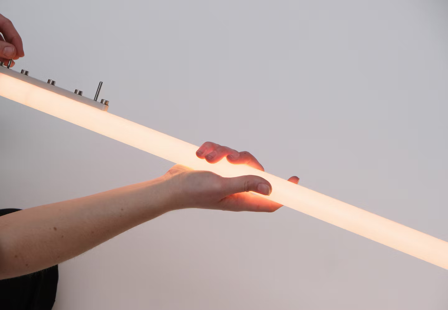 This family of floor lamps proposes an interchangeable lighting solution attached to a marble block. The exercise is an attempt to provide minimal support for the linear lighting elements through the simple gesture of touching the marble base with an invisible magnetic connection. The result is a distilled composition of basic elements.