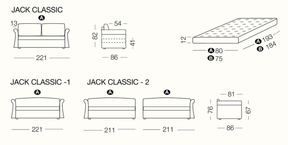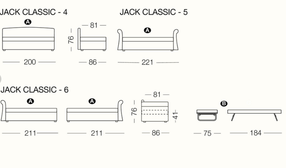 Jack is a practical and versatile sofabeds program, including models with calm or romantic designs adapting to any furnishing need. Jack is offered in multiple versions: sofa, chaise, bed with slatted base, with headboard, with footboard, full, double or with drawers and can therefore suit many environments such as a colorful child’s bed, a comfortable den or simply to be used as a family room that offers a comfortable guest bed when needed. Jack may be adorned with a large variety of cushions types according to your own taste and with a second bedspread for the pullout bed.