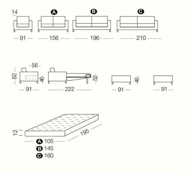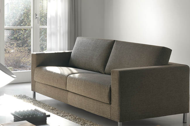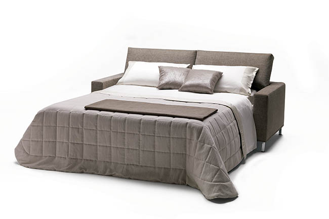 James combines innovative design and contemporary style, featuring 12 cm. legs in hammered silver metal. The bed with its mattress folds out effortlessly without the need to remove the seat and back cushions. The height of the legs makes it easy to clean under the sofa. The legs are also available chromium plated and in wengé, cherry or natural finish.