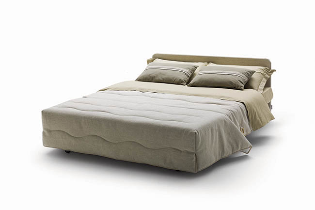 Roger retains a simplicity of line, with an original approach to the detailing of natural wood rings of its quilted covering. Roger has a practical front pull-out bed. Covers are completely removable and can be dry cleaned. Roger has a mattress made in undeformable foam covered with a quilted fabric. Roger can be put together with a headboard with a removable cover, washable according to the fabric chosen.