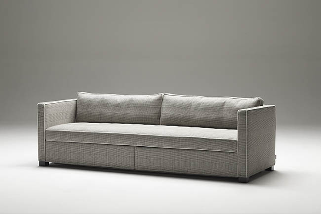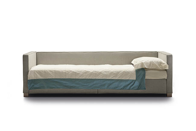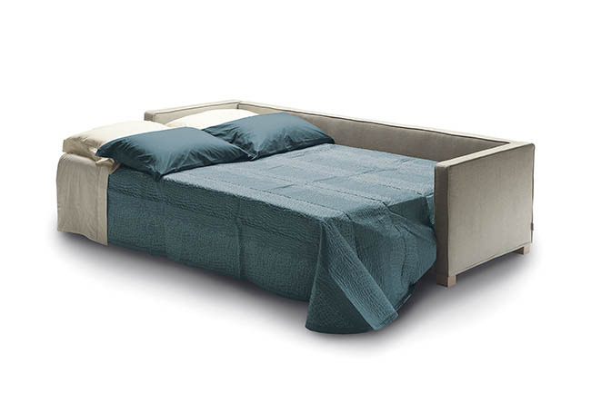 With its timeless lines Andersen, sofa bed with Lampolet mechanism, meets any design requirements. The seat cushion is a single horizontal bed; through a simple mechanism and just removing the feathers backrest cushions, which make the sofa bed very comfortable, Andersen converts into a double bed for sleeping horizontally instead of vertically. The covers are fully removable and can be washed or dry-cleaned depending on the selected fabric. Andersen is also available as a fixed sofa that can be completely disassembled for easy delivery.
