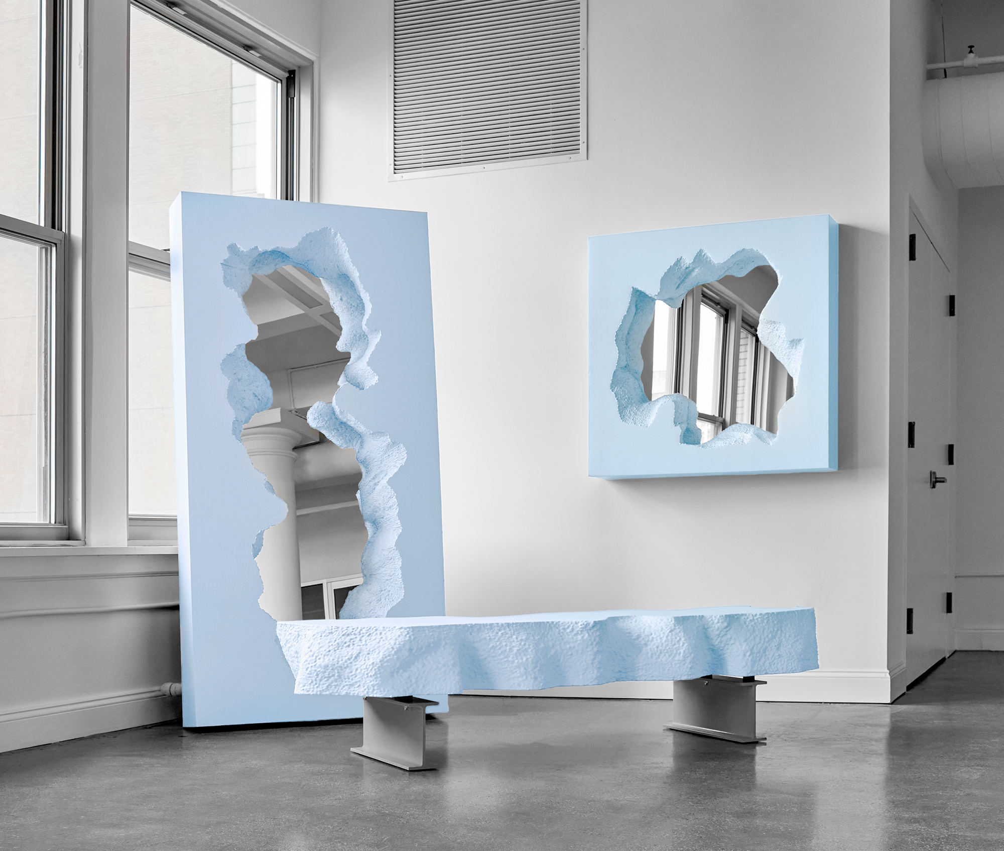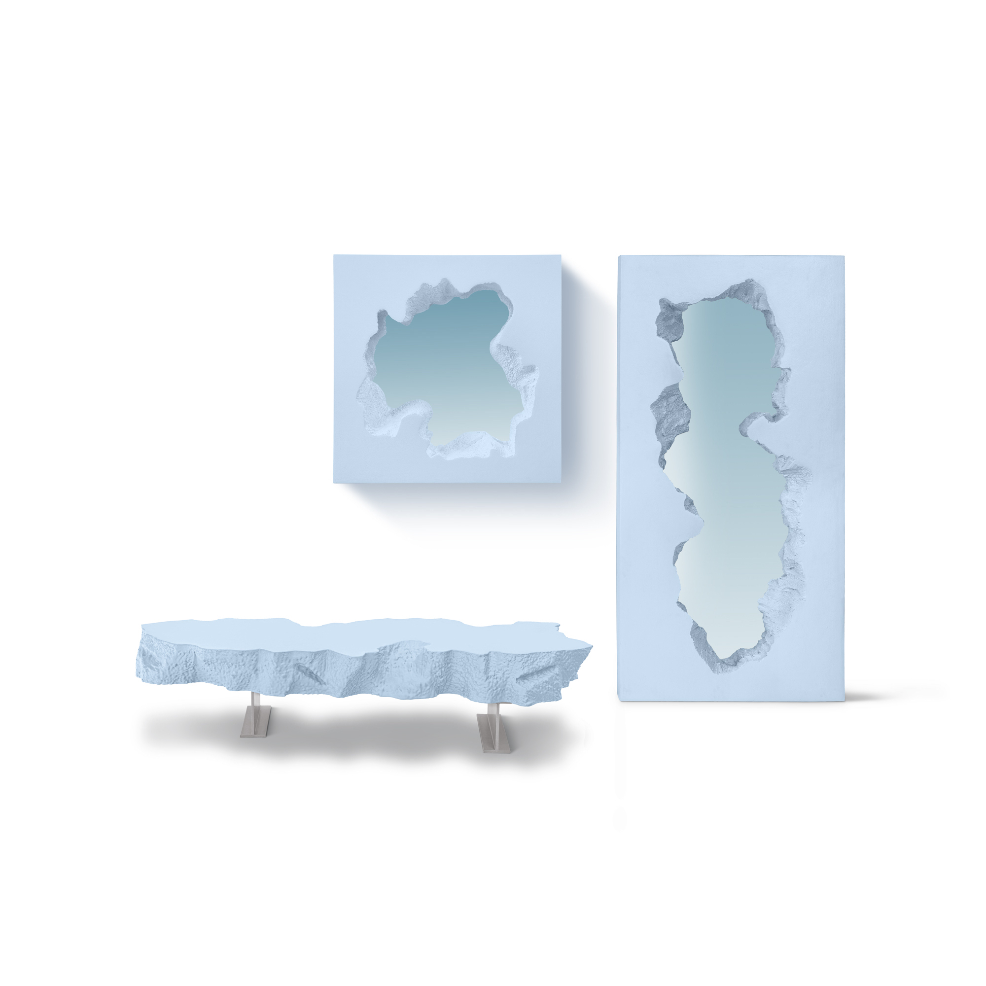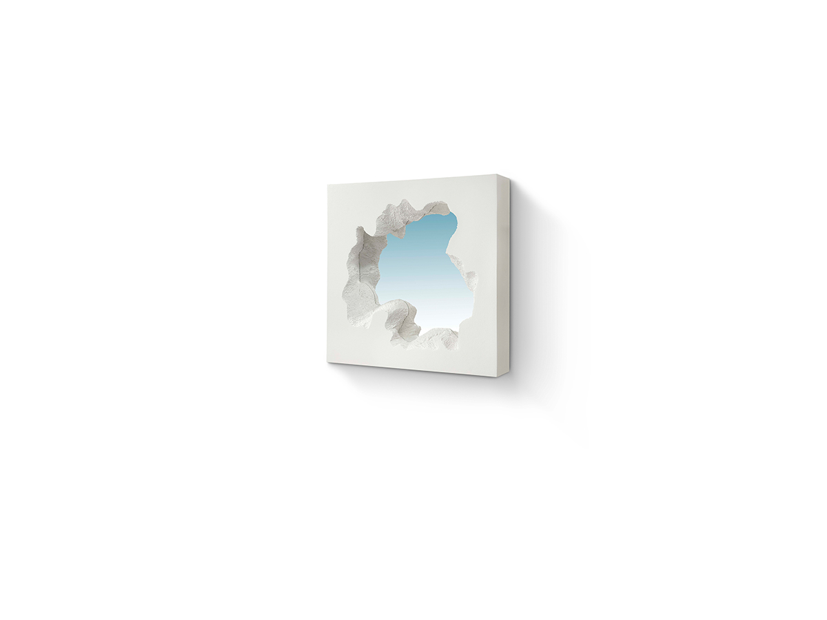BROKEN MIRROR è pi' di una superficie rifettente.Sfidando lapercezione convenzionale degli specchi siimpone come un'operad'arte ipnotica, Questo design innovativo, frutto dellacollaborazione tra Gufram e il duo newyorkese Snarkitecture,combina una superficie rifettente con una cornice in morbidopoliuretano per creare l'illusione di un portale che si apre nellaparete. Non solo riflette l'ambiente circostante, ma crea anche'illusione che una stanza si fonda con un altro ambiente,regalando un'esperienza visiva dinamica e sorprendente.