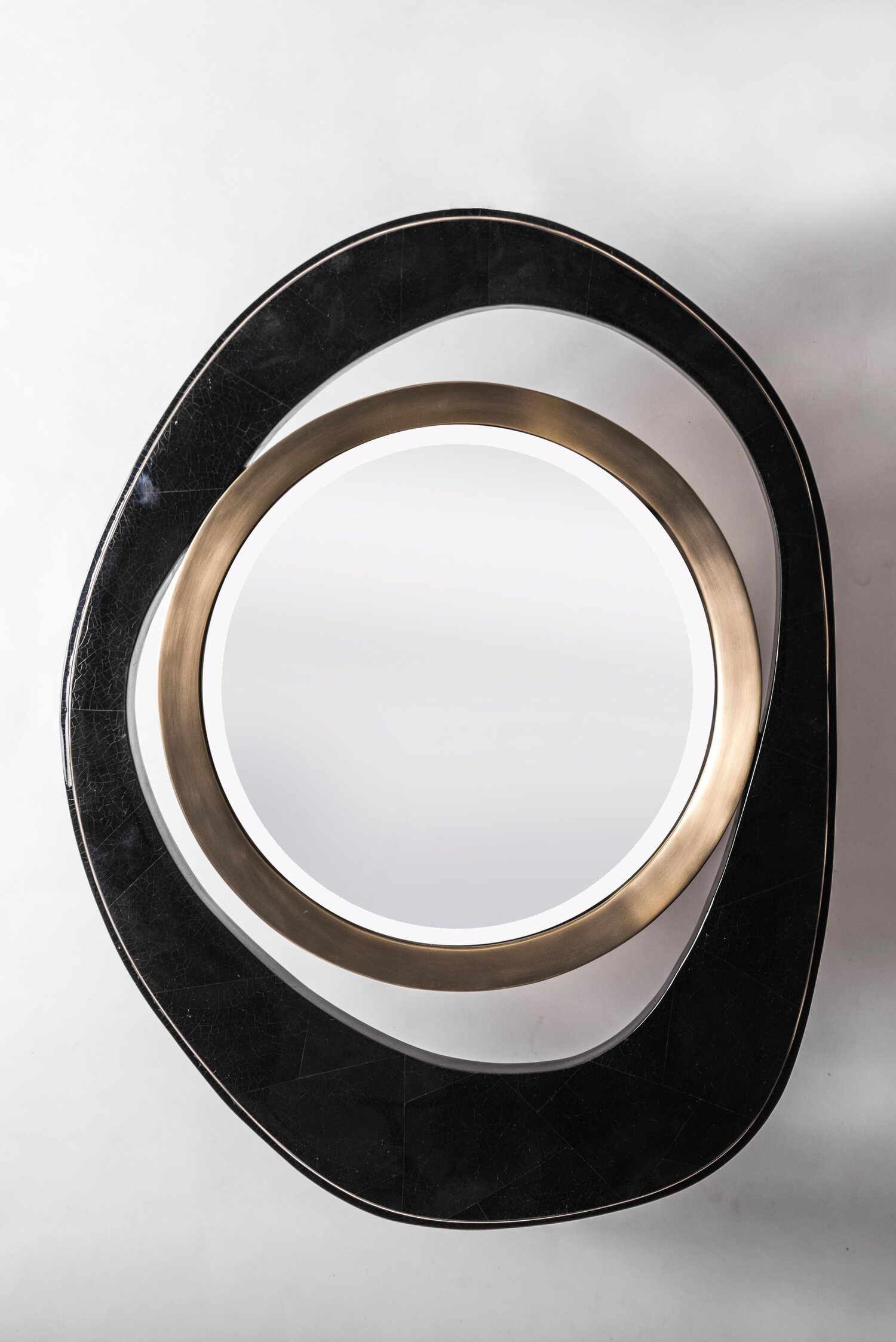 The Peacock Mirror inspired by R&Y Augousti’s iconic nesting coffee tables is the perfect accent piece to dress up any wall. Available in a large size.