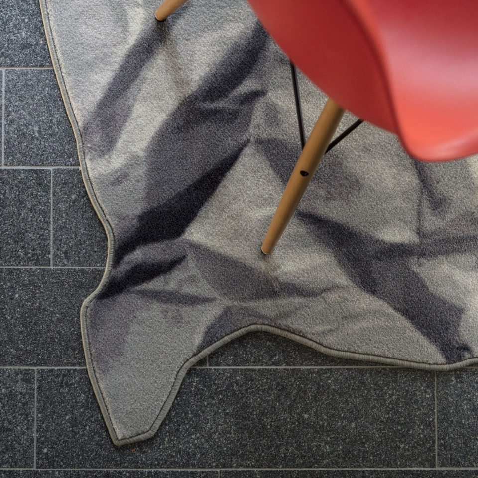 Appunti è un tappeto, realizzato 80% lana e 20% poliammide stampato in bianco e nero con bordo a filo. Ispirato ai blocchi per gli appunti e agli scarabocchi che usualmente si fanno sui fogli quando si annota o si disegna qualcosa che casualmente cadono a terra e li si adagiano.