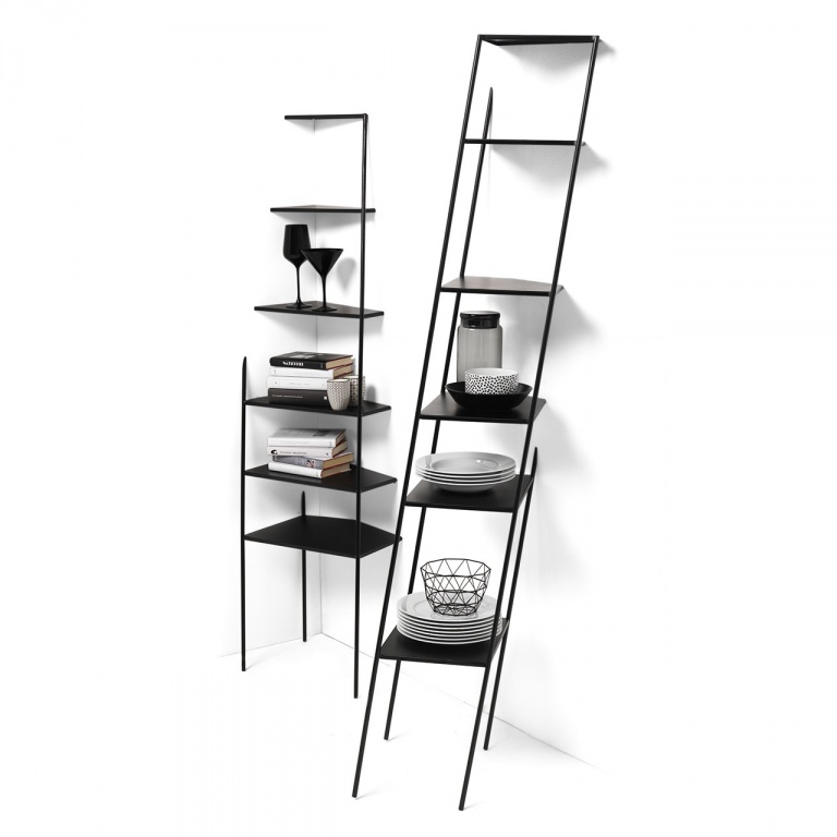Adelaide è un’etagere con struttura in massello di legno di Iroko oppure in ferro verniciato nero opaco E’ completa di 13 ripiani, predisposta per il fissaggio a soffitto (altezza soffitto da cm 236 a cm 302). E’ una elegante libreria, terra cielo con un piantone girevole a base quadrata al quale sono fissati in maniera asimmetrica sui 4 lati i ripiani di due misure differenti (20x30 cm, 25x30 cm).
