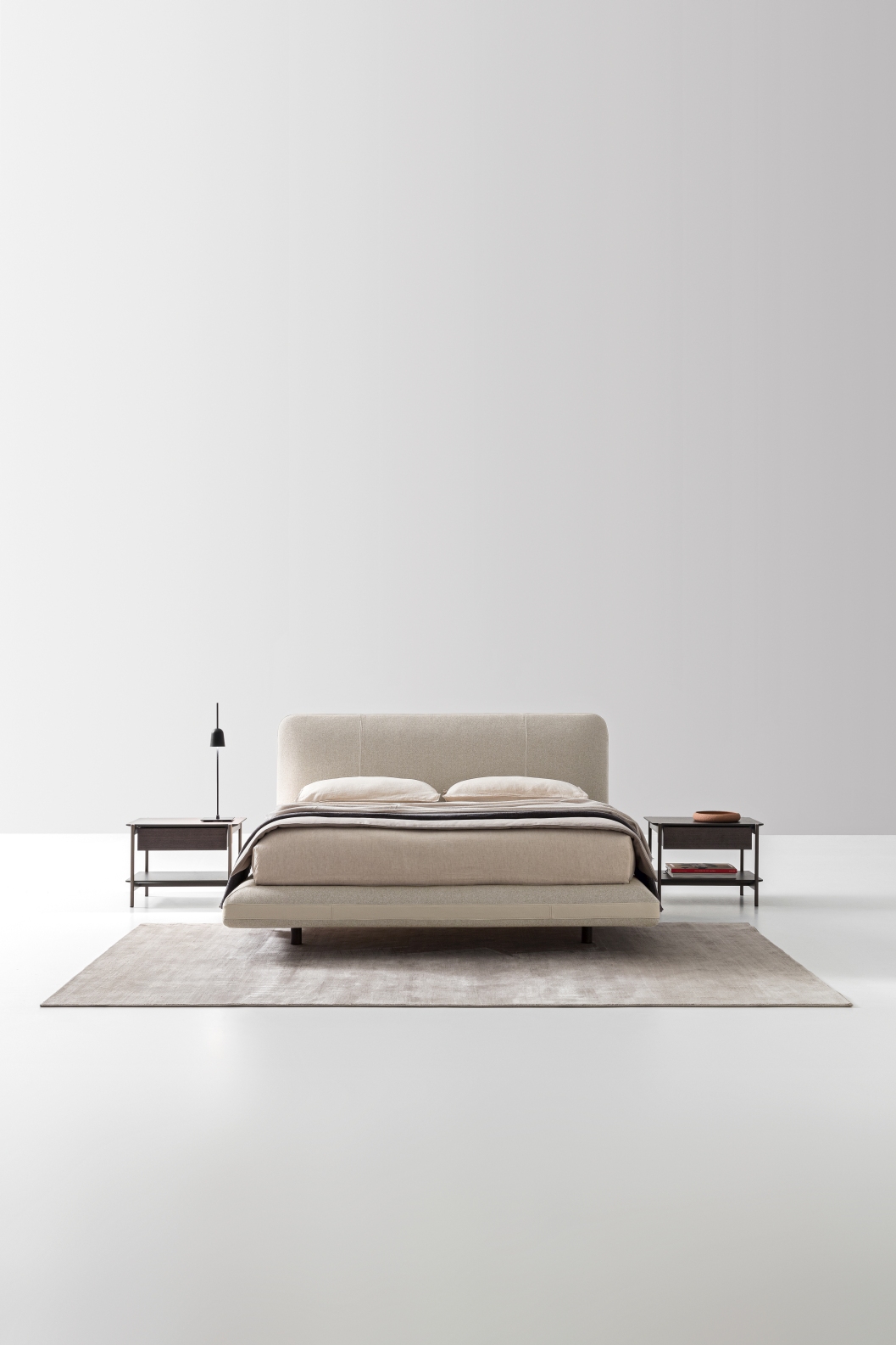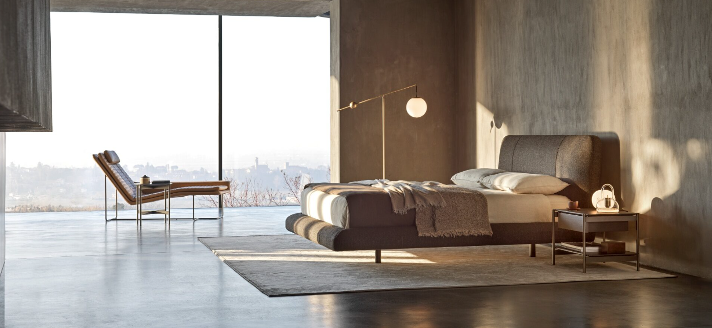 Un design dal carattere forte e raffinato combina rotondità e curve aggraziate, impatto estetico e funzionalità. Alla testiera alta e imbottita si unisce un giroletto marcato da fasce e cuciture, le quali permettono di valorizzare Avalon con accostamenti ricercati di tessuti e pelli.