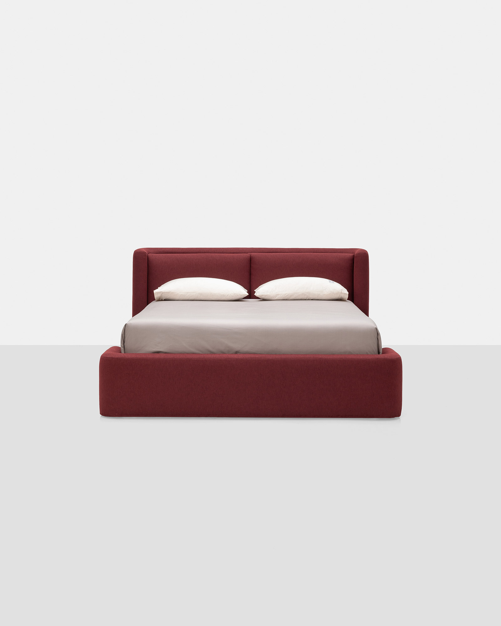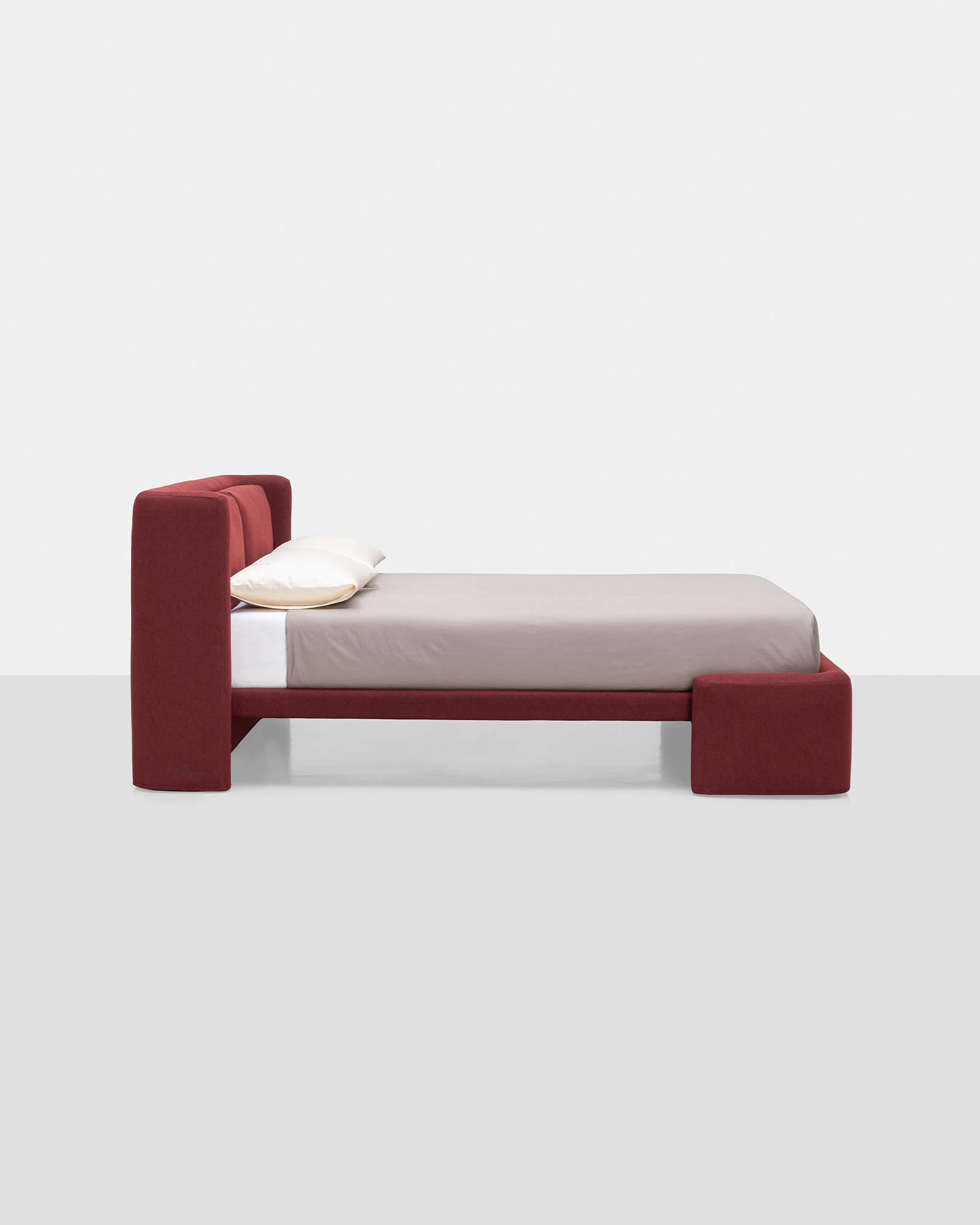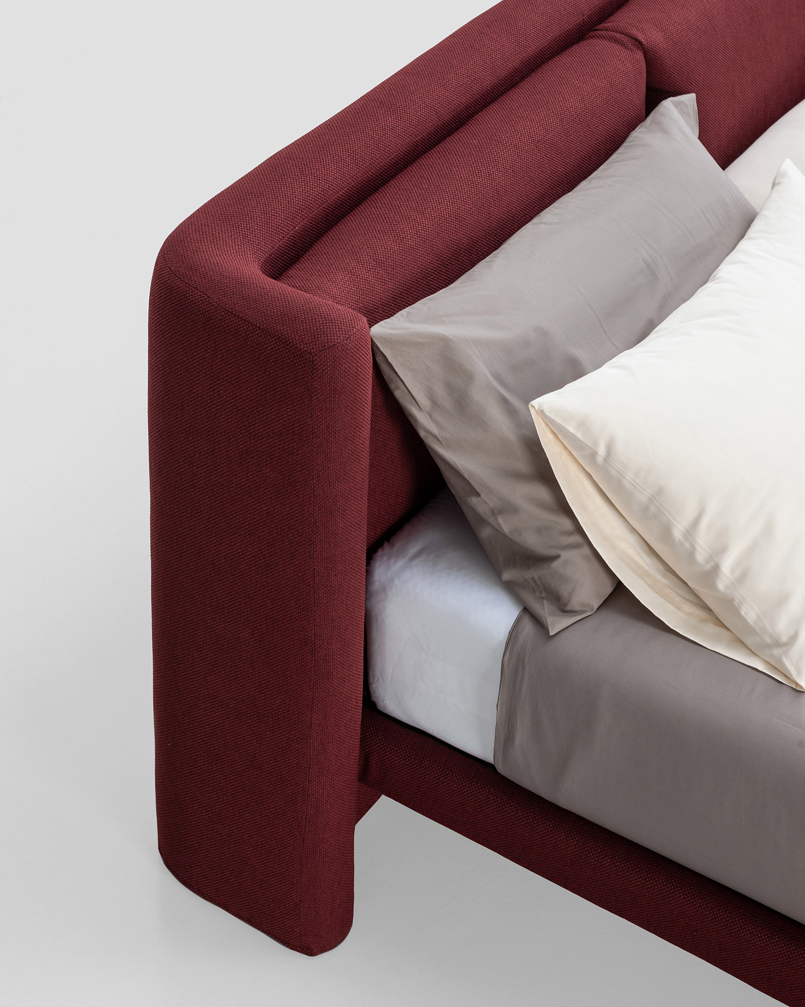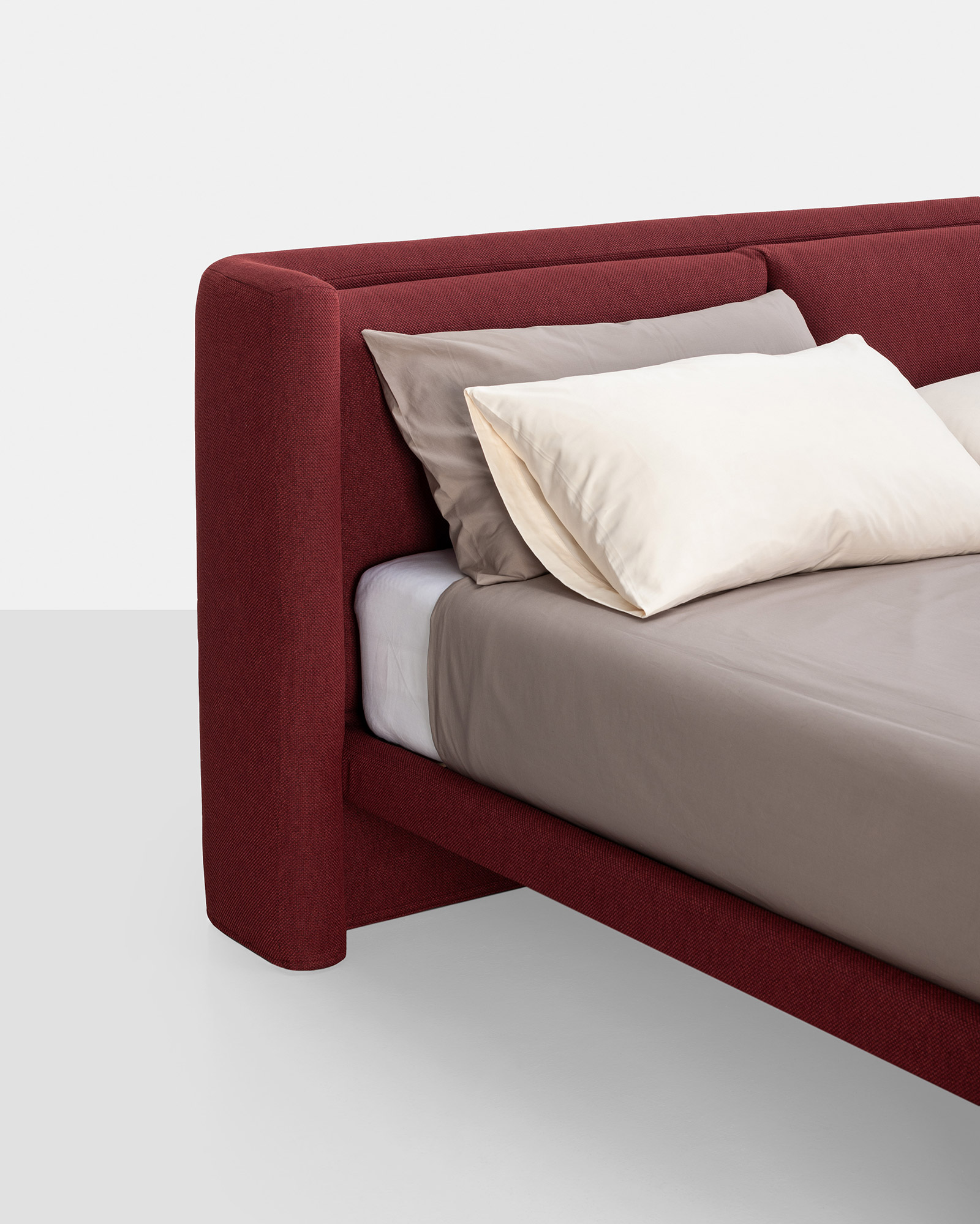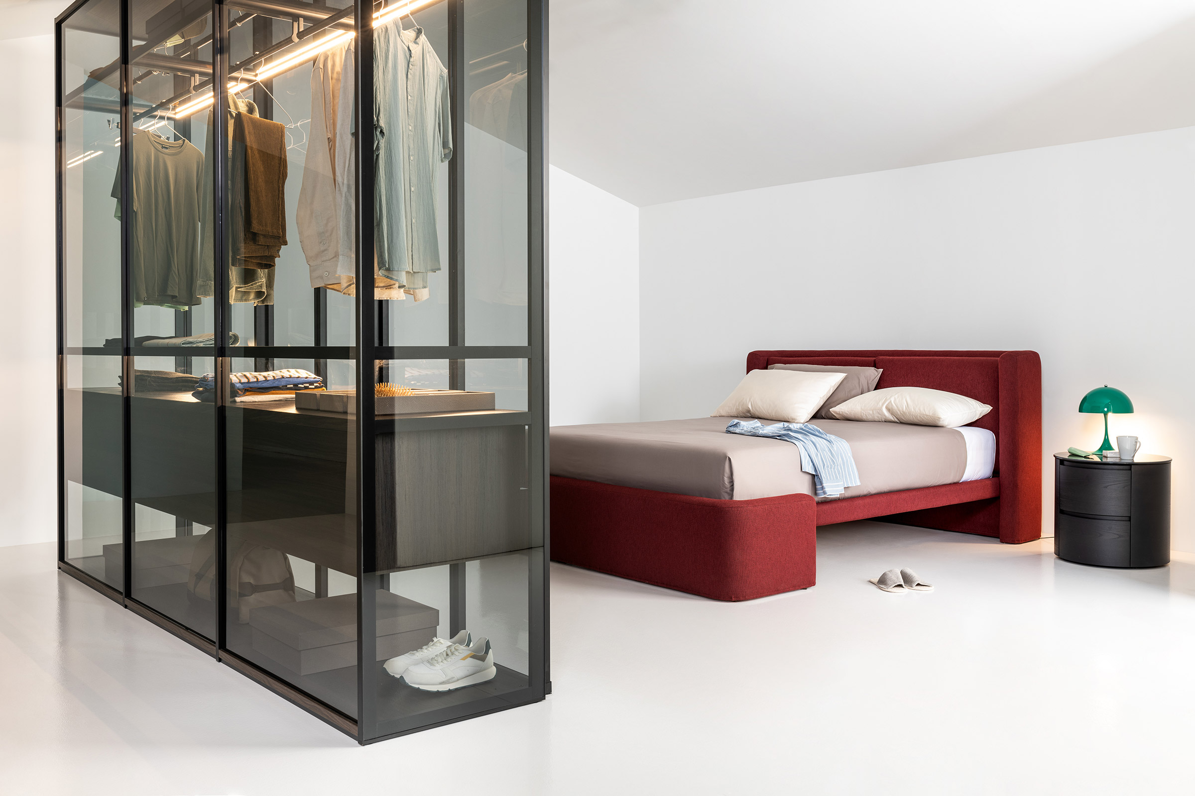 Two structures, characterized by a distinctive composition, “embrace” the Dimora bed. An architecture within architecture. A story of oxymorons that combines soft rigor and regal presence.