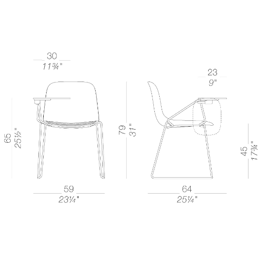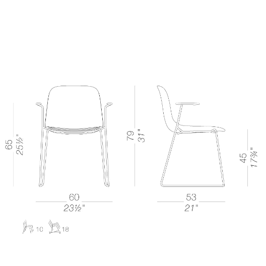 Gambe a slitta, profilo essenziale: la sedia SEELA è impilabile e leggera, e grazie alle tante possibilità di personalizzazione si adatta facilmente a ogni ambiente.