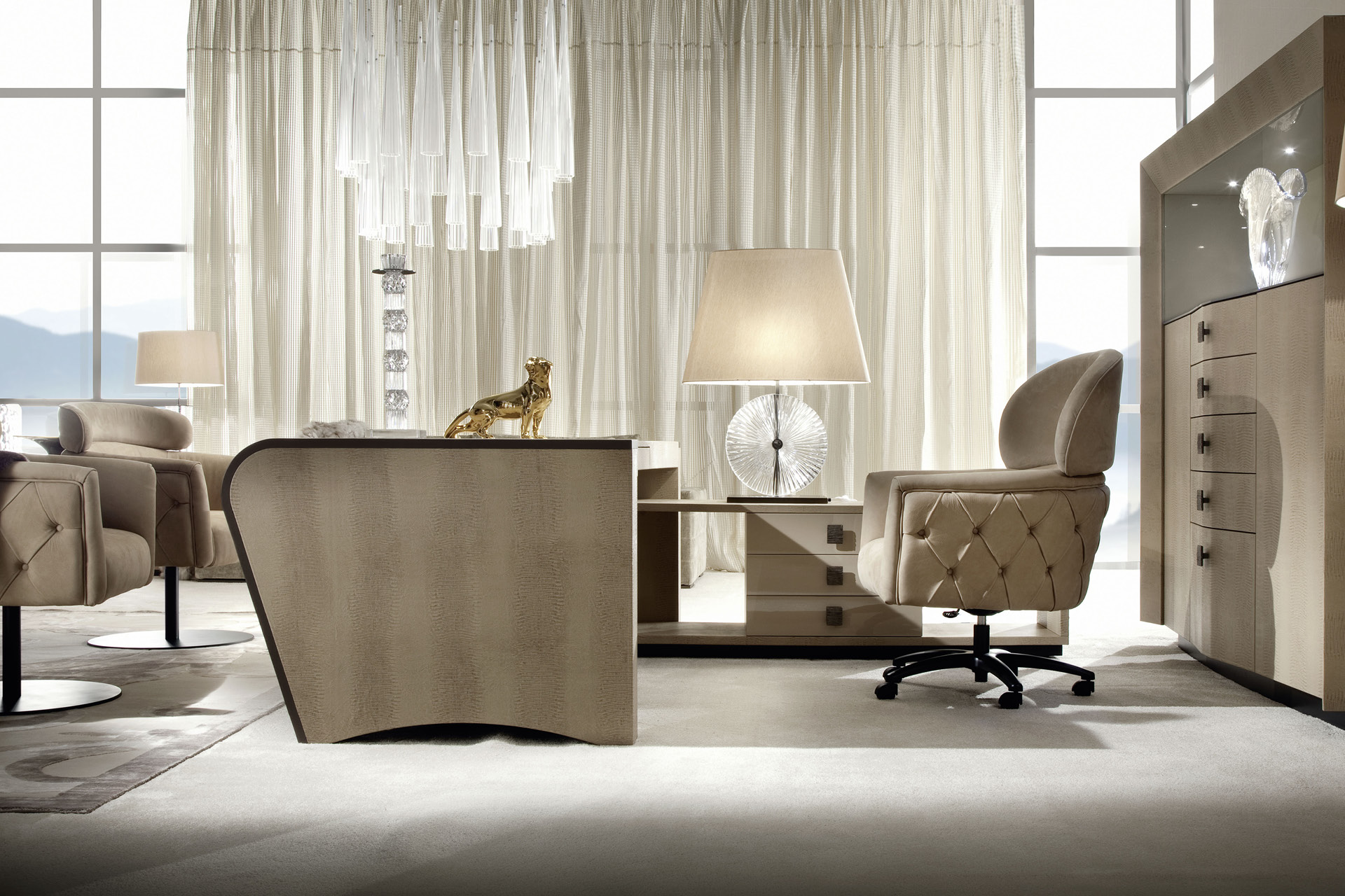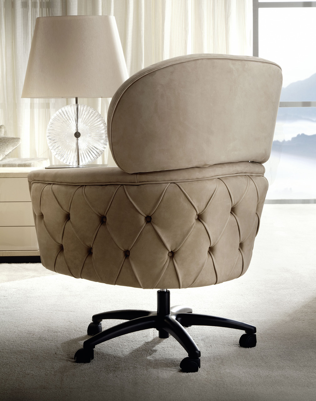 Presidential office chair with buttoned back available in leather, nubuk leather, suede fabric, on wheels with adjustable height. Leather needs: mt. 5,50 Nubuk leather needs: mt. 7,00 Fabric needs: mt. 3,50