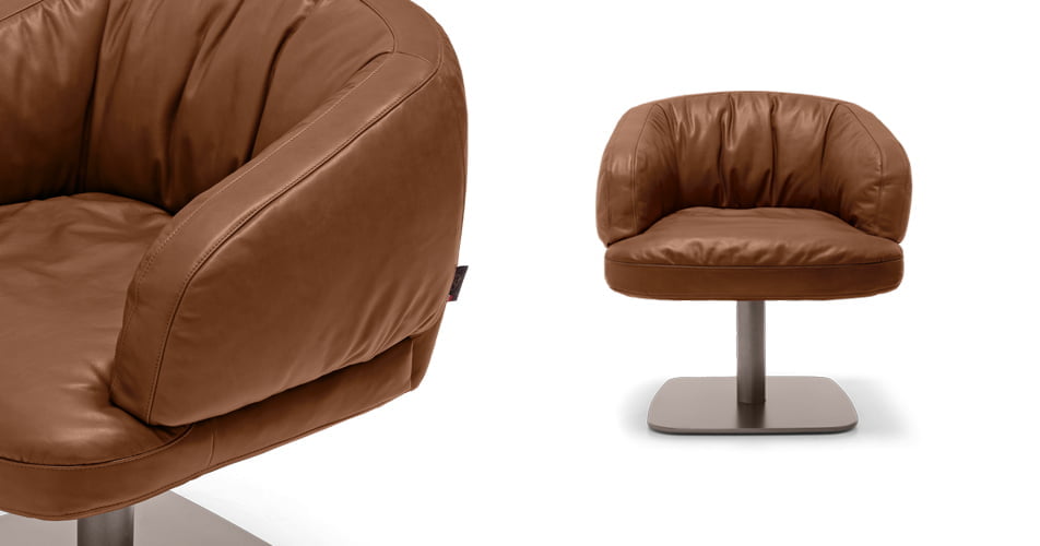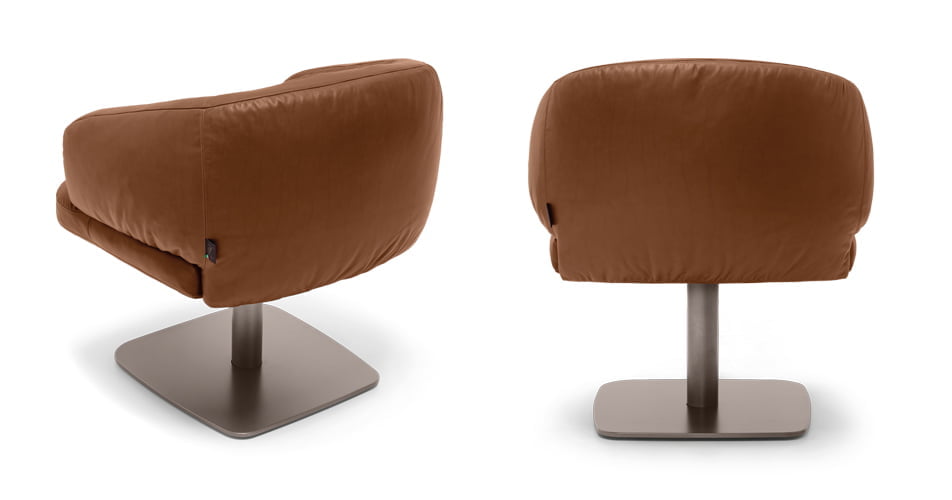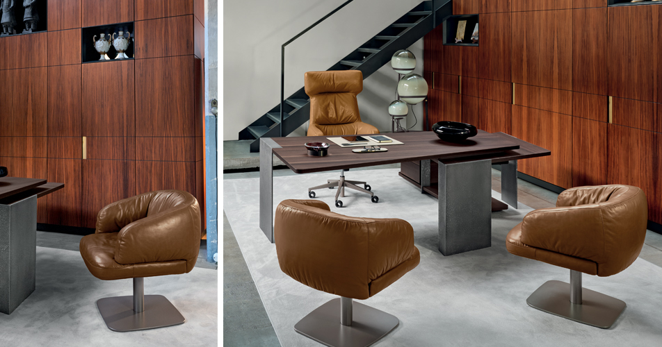 Poltrona per l’ospite: rivestimento in pelle, base Oxy grey.