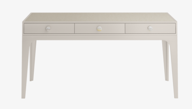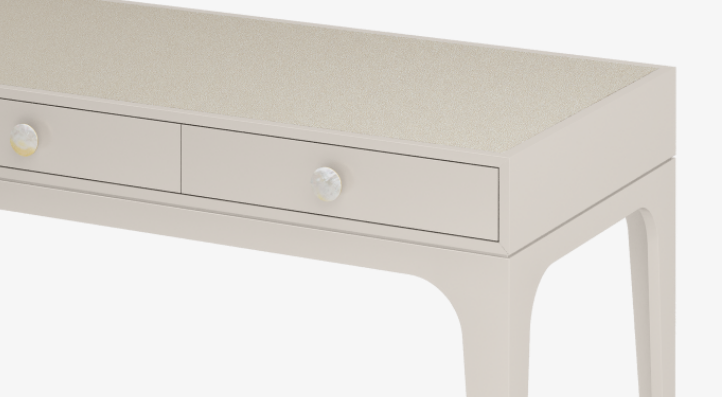 Chic and understated, the monotone NEW YORK desk's glossy lacquered wood structure is subtly embellished with a leather surface while three drawers are accessed with white mother-of-pearl handles. Working from home never looked so elegant.