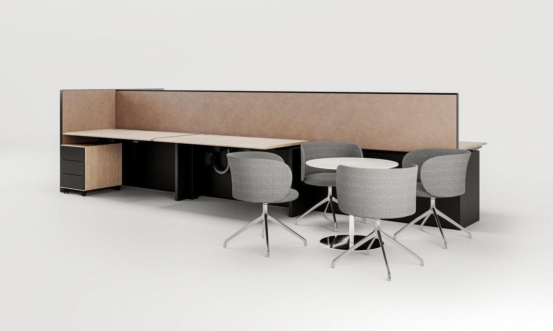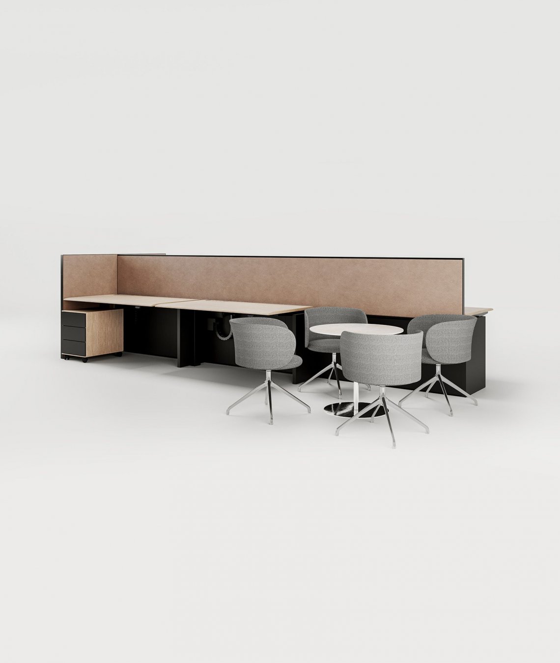 Lotto is a bench desk system designed for workstations in open space environments. Elegant with its refined finish and incredible attention to detail. It can be configured in a variety of ways to meet specific needs: whilst maintaining the same overall size, the system can be organised either into many smaller workstations or a few larger workstations. Having a flexible office space that can adapt to changing needs is, today more than ever, an incredible advantage. The height adjustable desktops are equipped with dividing panels that can be positioned between facing desks to provide visual and acoustic privacy or on the side to create a corridor. If necessary, a space can be left free to create a small meeting area with a meeting table. The system is available in a variety of different materials and finishes which can be customised according to specific needs.