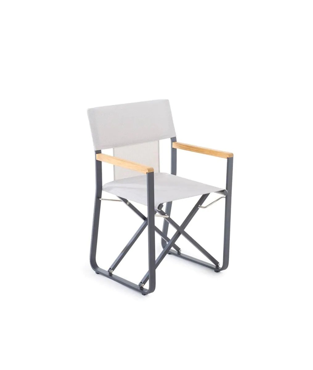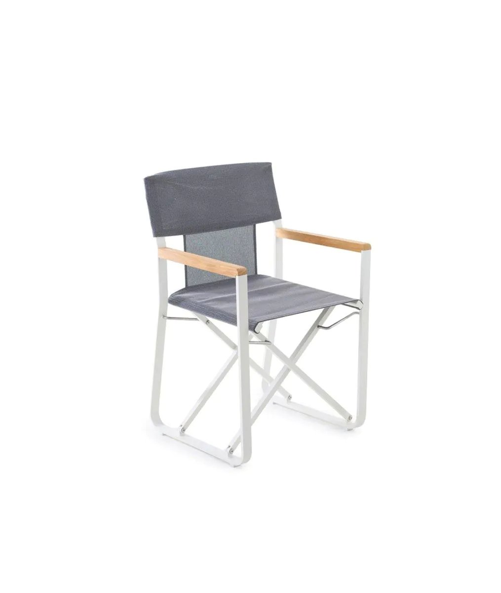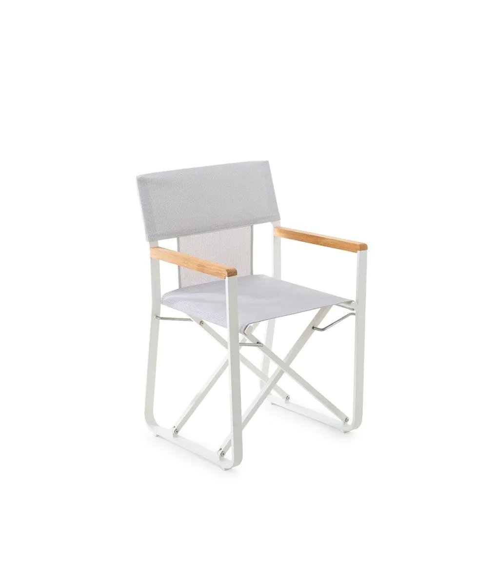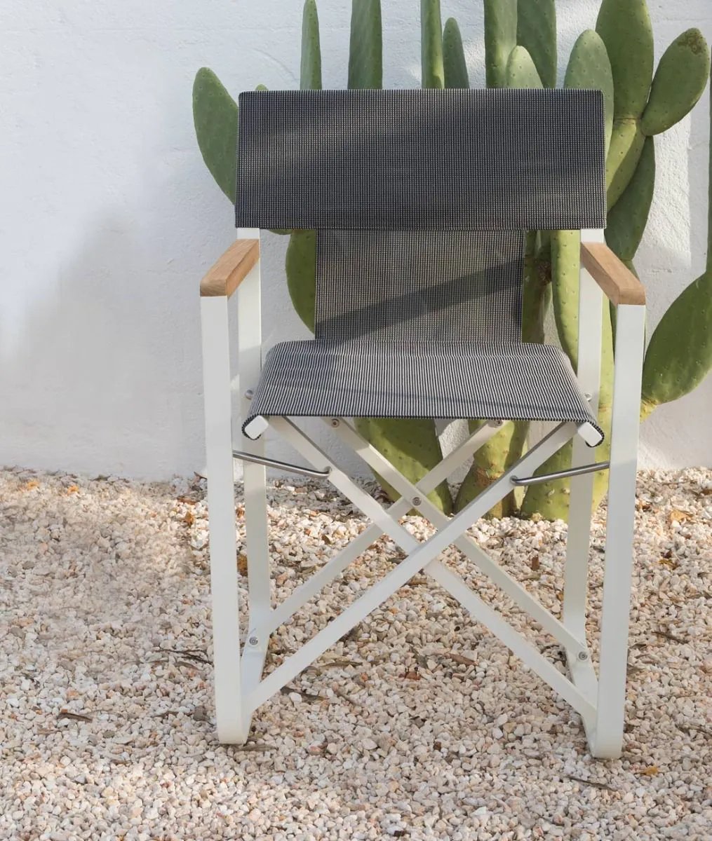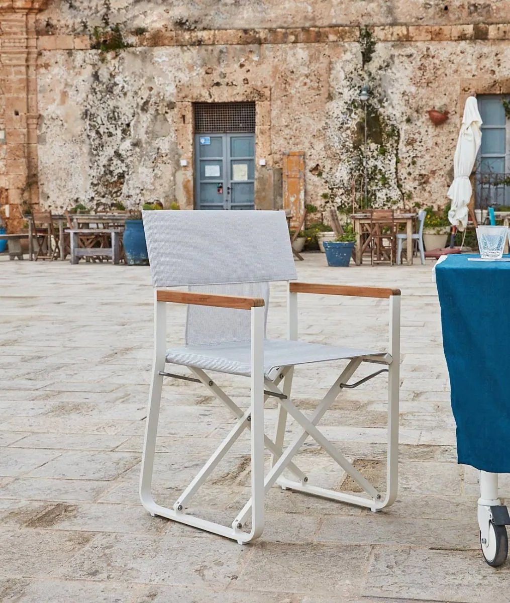 Esteticamente leggera, versatile e pieghevole, Pevero rivisita la classica sedia da regista grazie al prezioso accostamento dei materiali di cui si compone. Alluminio, teak e tessuto tecnico convivono armoniosamente in quattro diverse combinazioni di colore garantendo qualità assoluta e massima durata nel tempo.
