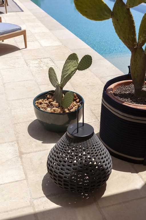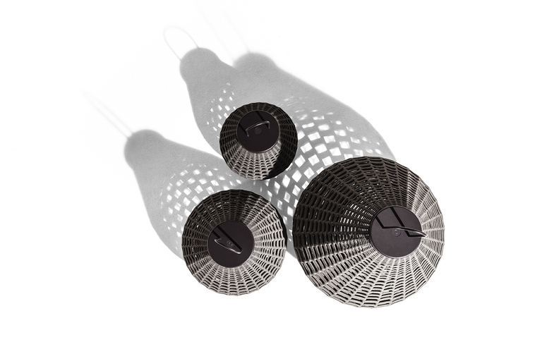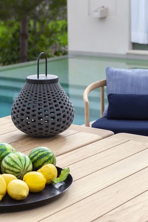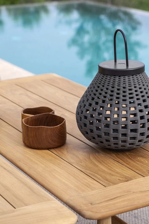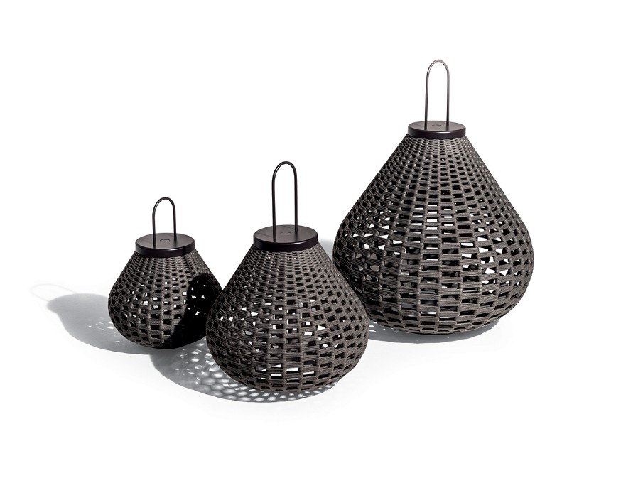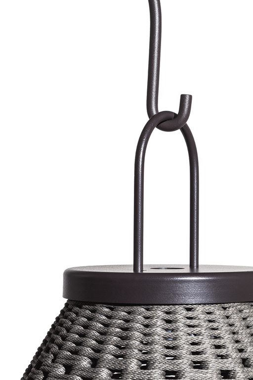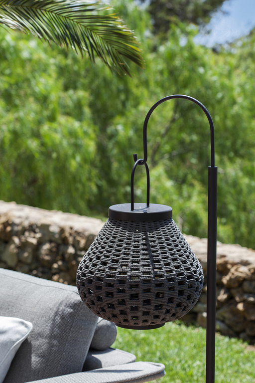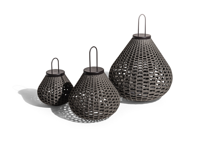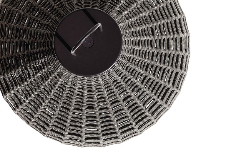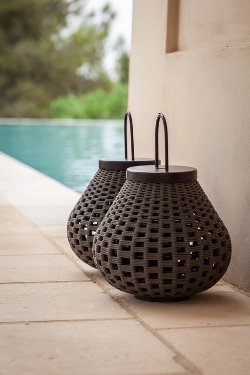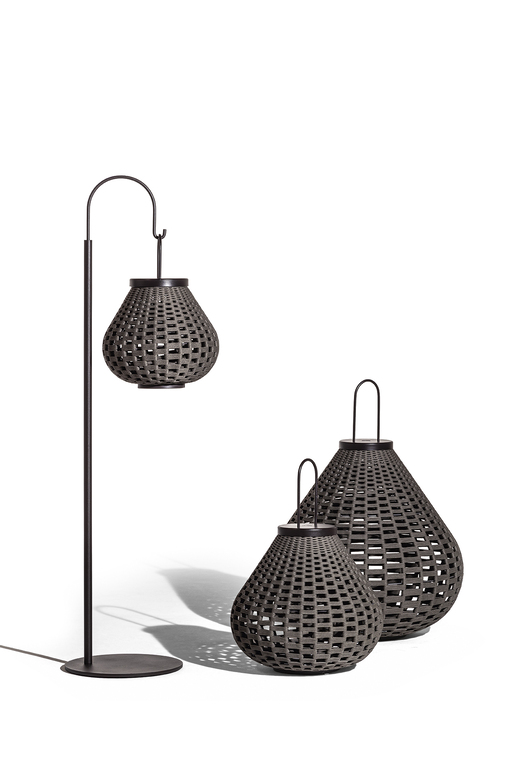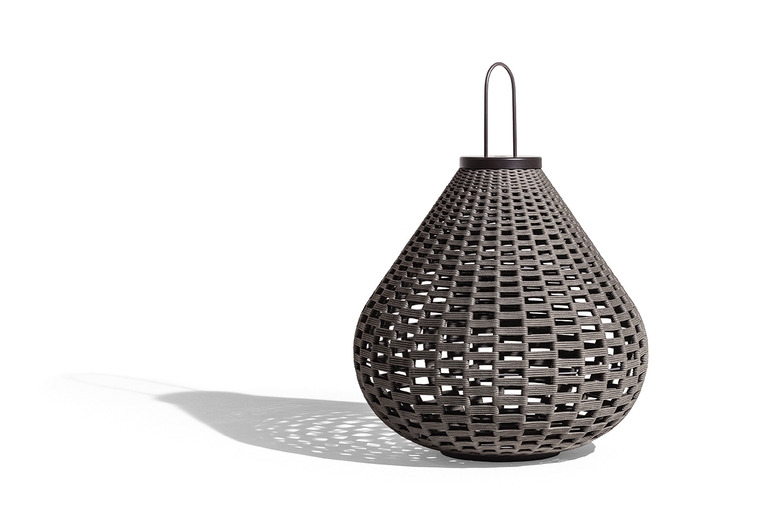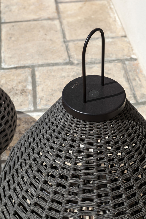 Technology, design and craftsmanship. Sparkler outdoor lamps create an enchanting atmosphere through light sculptures that decorate outdoor spaces of all kinds. Available in three sizes: the large floor lantern, the medium floor lantern and the small table lantern, they are made from a lacquered powder-coated aluminium frame on which a 0.5 mm polypropylene rope is hand-woven. The small lamp can be converted into a floor lamp by means of the arch support, or into an outdoor ceiling lamp by means of the hook and woven rope. The luminaire is a LED with an 8W lithium battery, rechargeable via USB cable. Designed by Kensaku Oshiro, the Sparklers belong to the Boundless Living Outdoor Collections at Poltrona Frau.