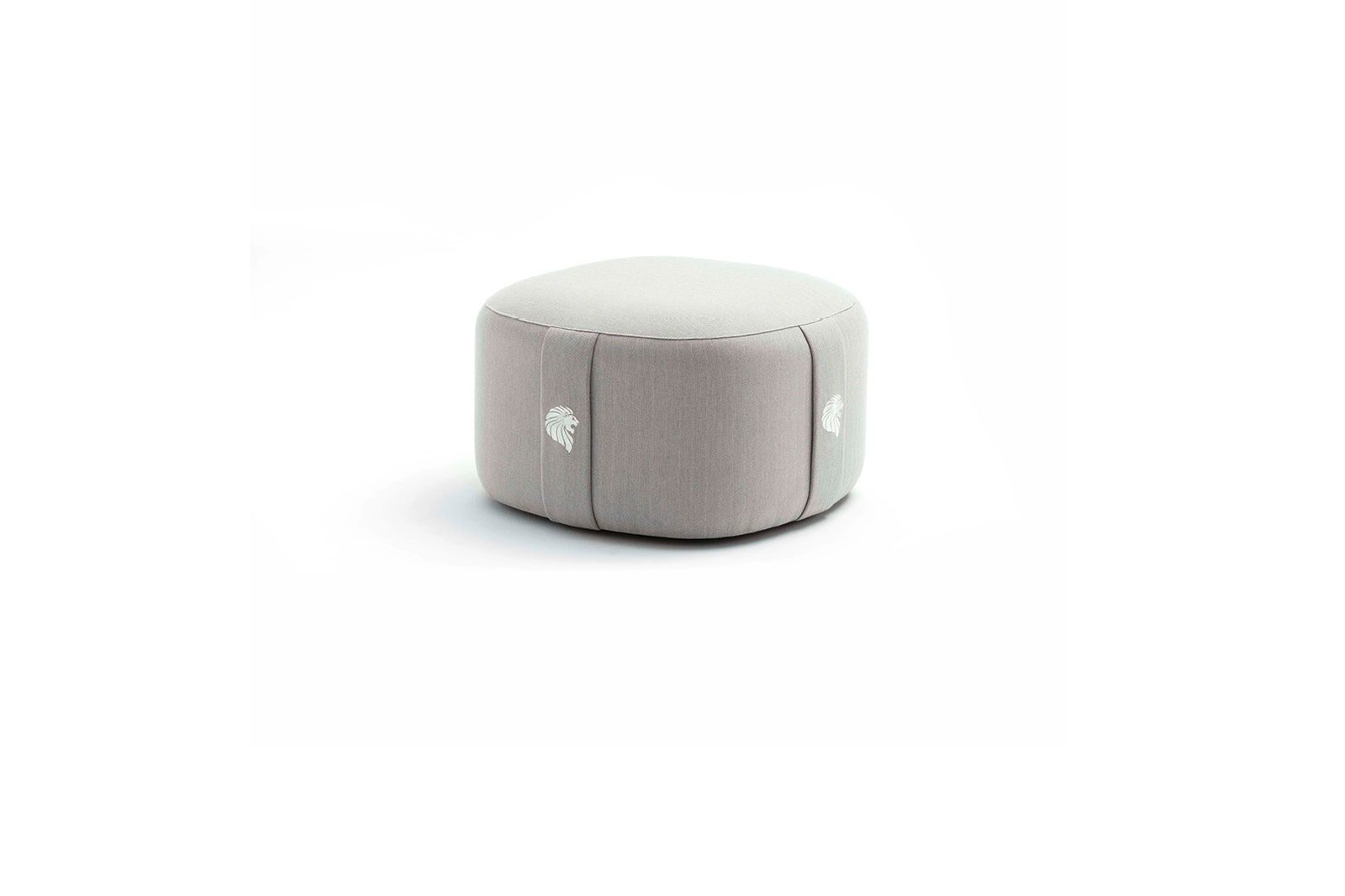 Outdoor round ottoman available in special treated fabric or first grade leather. 4 Giorgio collection logos embroidered on the sides.