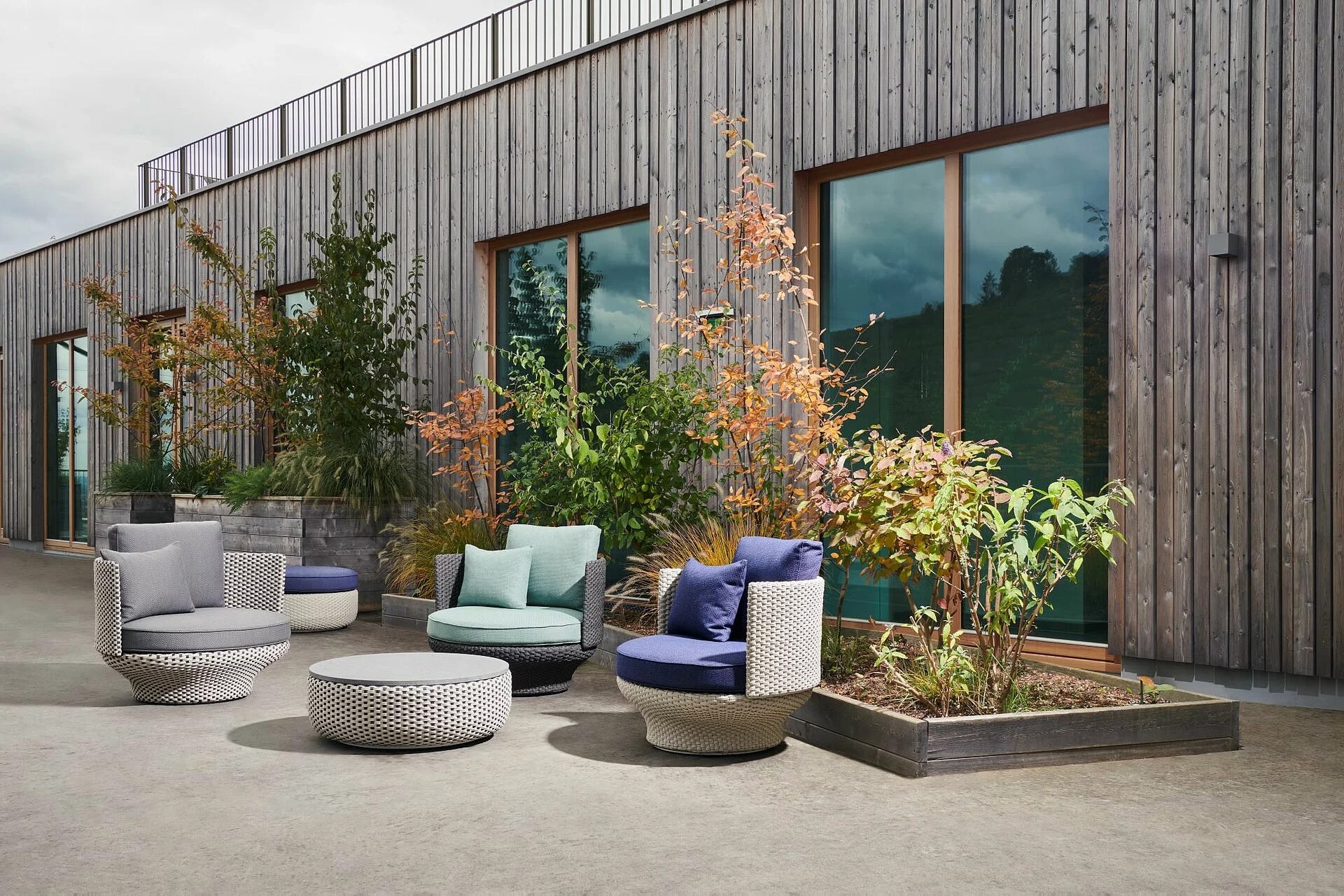 Der hochwertige Kaltschaumaufbau wird von einem wasserdichten, UV-best?ndigen Outdoor Textil zuverl?ssig geschützt. Der besonders pflegeleichte Bezug sowie die verarbeiteten Zwirne und Zippverschlüsse halten allerh?chsten Belastungen stand und bleichen nicht aus. Die eigens kollektionierten Outdoor Stoffe mit angenehmem Griff sind im übrigen auch indoorf?hig und kleiden Polsterm?bel perfekt, die hoher Beanspruchung oder starker Lichteinstrahlung ausgesetzt sind.