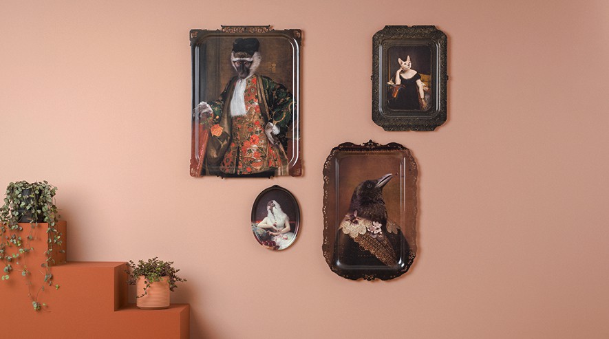 Large trays to be used to serve the guests, they can then be displayed freely on a wall as a pictorial work, a mythological painting
