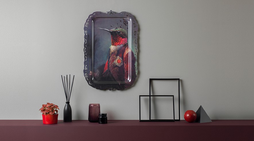 Large trays to be used to serve the guests, they can then be displayed freely on a wall as a pictorial work, a mythological painting