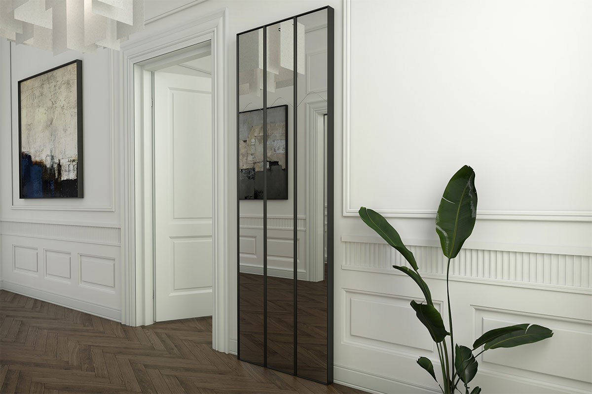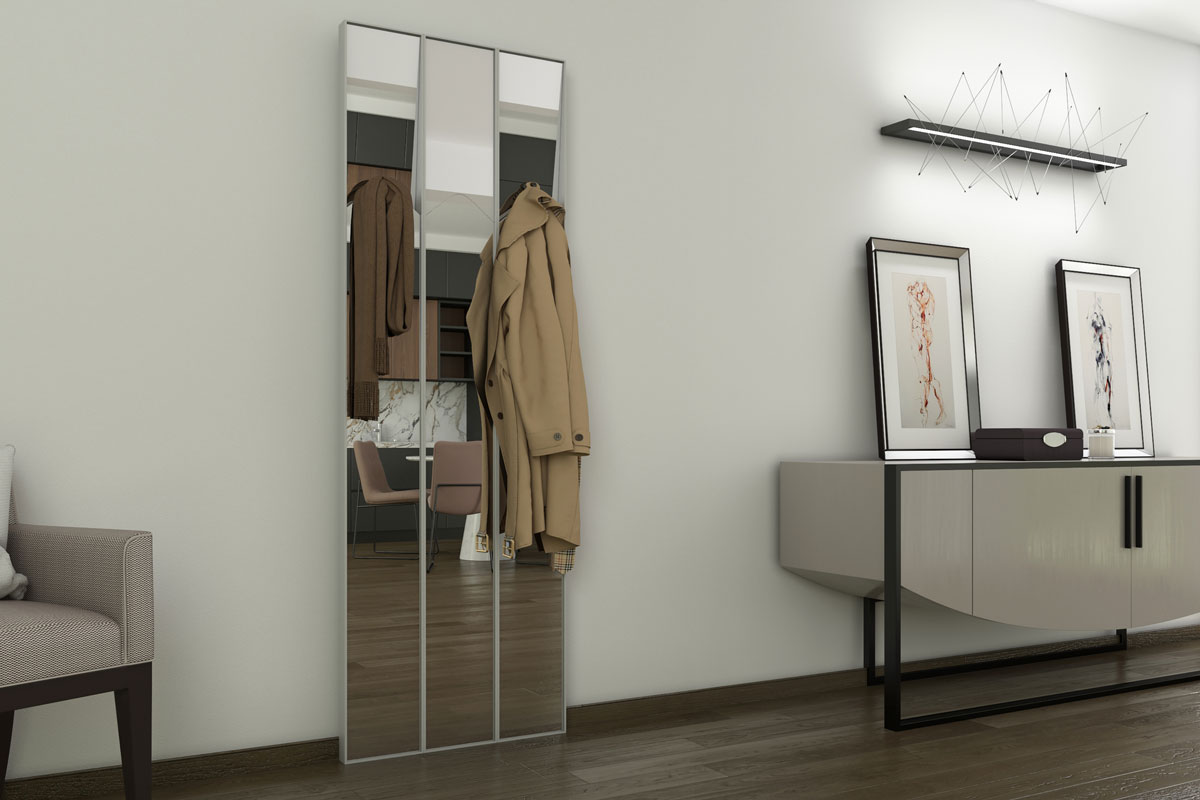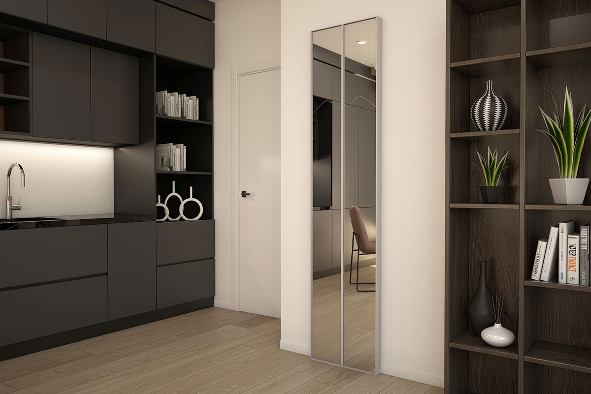 which can be pushed back and turns the mirror