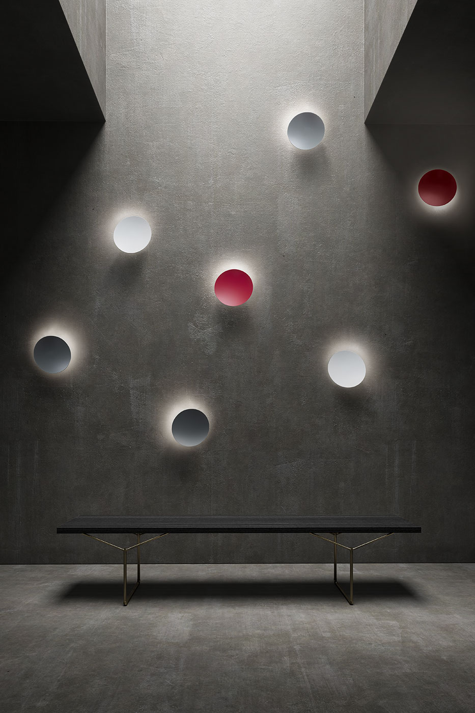 metal disk, a light source grazing the wall,