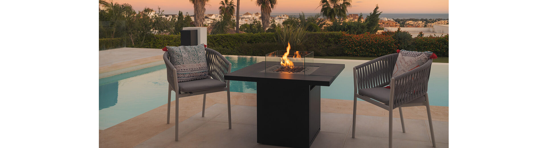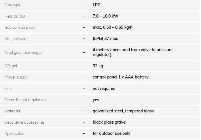 Square Table is a freestanding outdoor fireplace that can function as the main gathering point in your outdoor space. Made of rust-proof galvanized steel will resist the harshest weather conditions and its sleek black look will suit any outdoor design. Tempered glass panels protect the flames from the blowout.