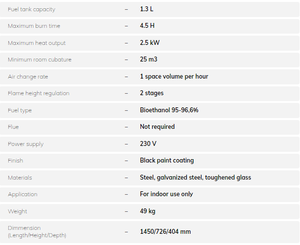 The Piano fireplace was created in accordance with the latest trends in interior design. The classic black color goes well with any decor. Piano is not only a fireplace but also a piece of elegant furniture. A properly profiled deflector allows you to hang your TV set above the Piano fireplace. Thanks to the BEV? Technology, the Piano fireplace ensures hassle-free, clean, and efficient fireplace experiences. Enjoy the beauty of living flames without compromises and limitations.
