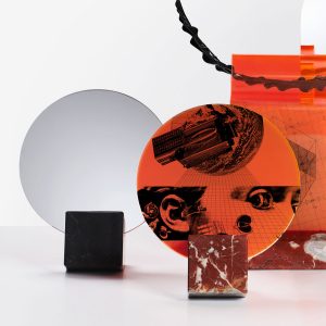 Vanitas is part of a series of small mirrors and a photo holder by Superstudio. The series began with the idea of using scraps from the processing of marble. An operation of bricolage, rather than creation, as the Florence—based group stated at the time. Careful milling of the irregular marble piece makes it become the precious support for a mirror and for two sheets of methacrylate to use as a photo frame. Ofelia, Spera and Vanitas, ahead of their time, represent a project of transformation capable of granting a new, refined aesthetic to industrial scrap.