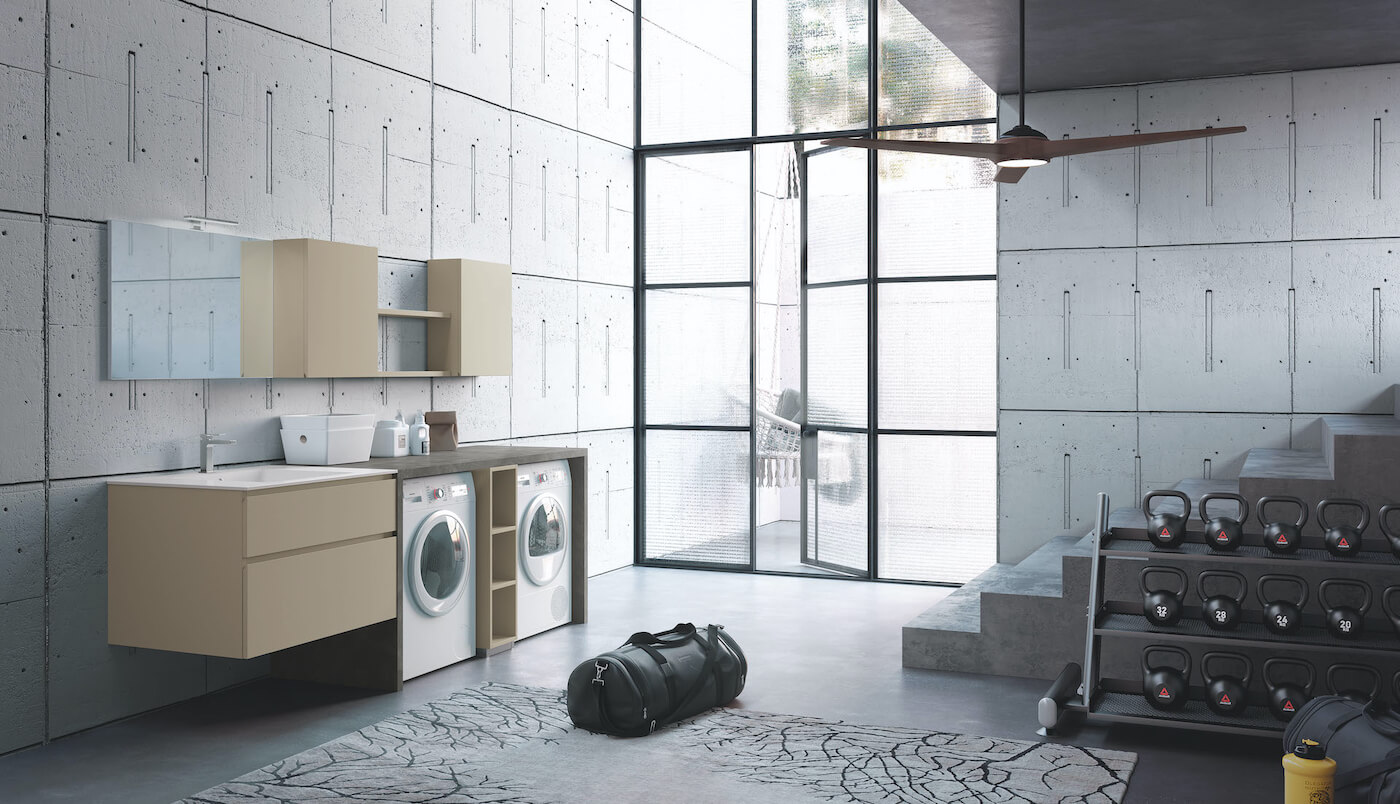 The extensive modularity of the Laundry System allows high levels of customization, also integrating structures containing appliances that offer the possibility of creating functional worktops.