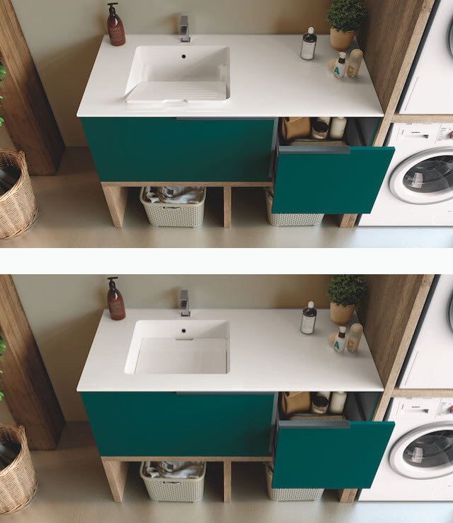 An alternative solution that proposes different compartments and spaces for the insertion of the most varied articles. A real workstation for the use of the home laundry. The 67.5 cm deep shoulders of the structure allow even the largest appliances to be housed, even in the case of partial protrusion of these, the functionality of the whole is not compromised.