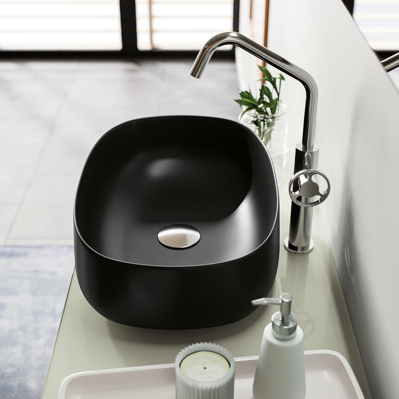 Volumes and shades harmonize in this composition, which offers interesting ideas on how to make use of space and arrange everyday objects.