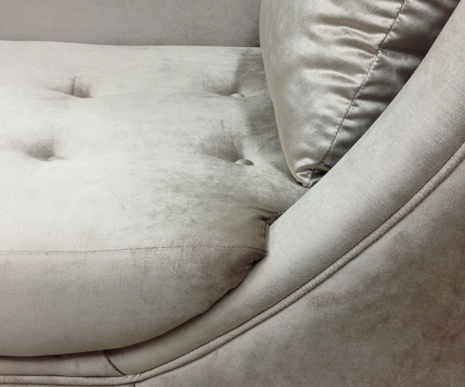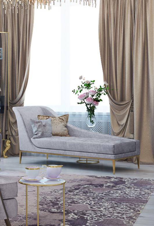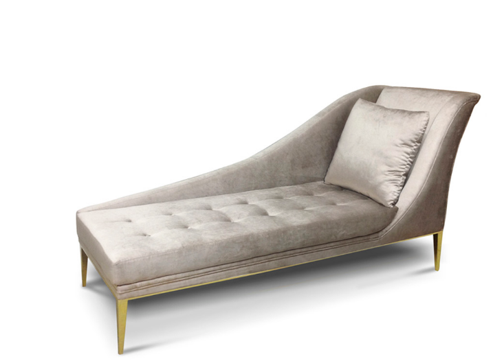 Designed with a seductress in mind the Envy Chaise will ignite your air with luxury design. Fully upholstered in lux upholstery fabric with a tailored cushion. This irresistible chaise is accented with soft button tufting. A chic metal band wraps the body leading to modern and sleek metal feet.